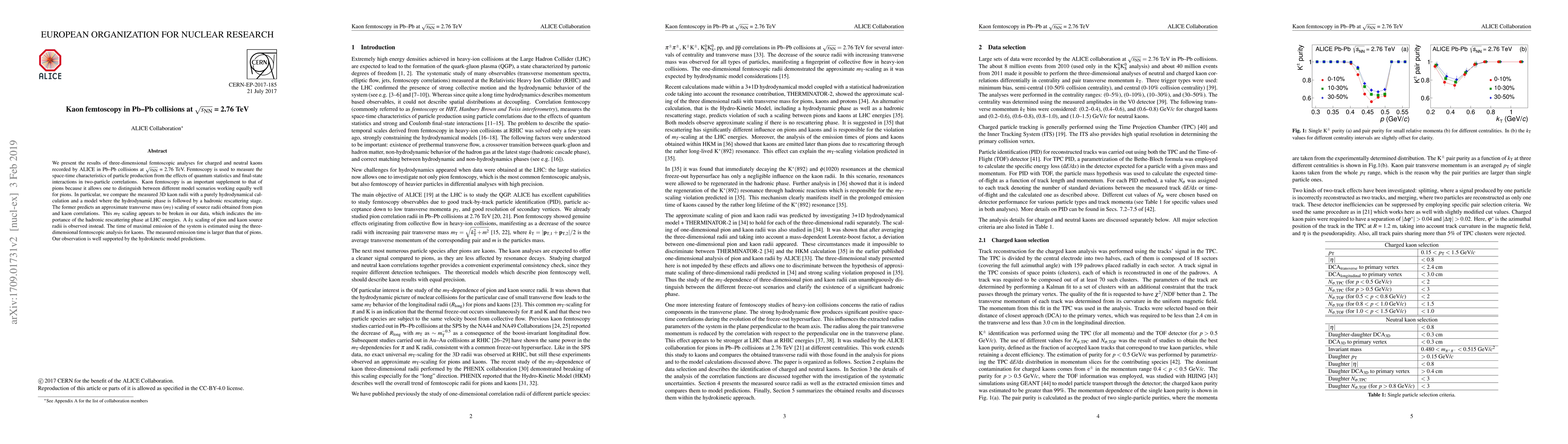 This paper reports on femtoscopic analyses of charged and neutral kaons in Pb-Pb collisions at 2.76 TeV, revealing a deviation from transverse mass scaling in kaon source radii, suggesting the significance of hadronic rescattering phases. The emission time for kaons is found to be longer than for pions, consistent with hydrokinetic model predictions.