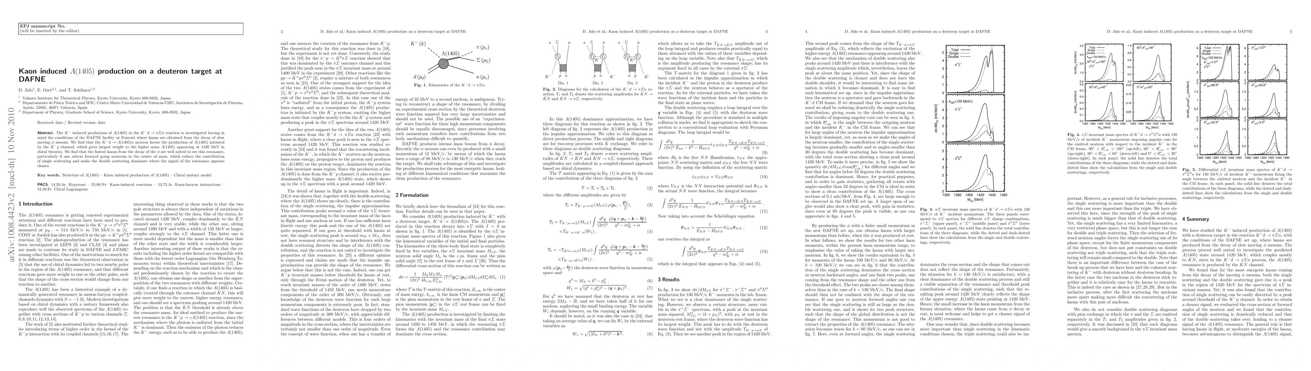 This study investigates K^- induced Lambda(1405) production on a deuteron target at DAFNE, finding that the K^- d to Lambda(1405) n process is most effective when initiated by the K^- p channel, particularly favoring the higher mass Lambda(1405) at 1420 MeV. The fastest kaons from phi meson decay, especially with forward-going neutrons, enhance the resonance's visibility.