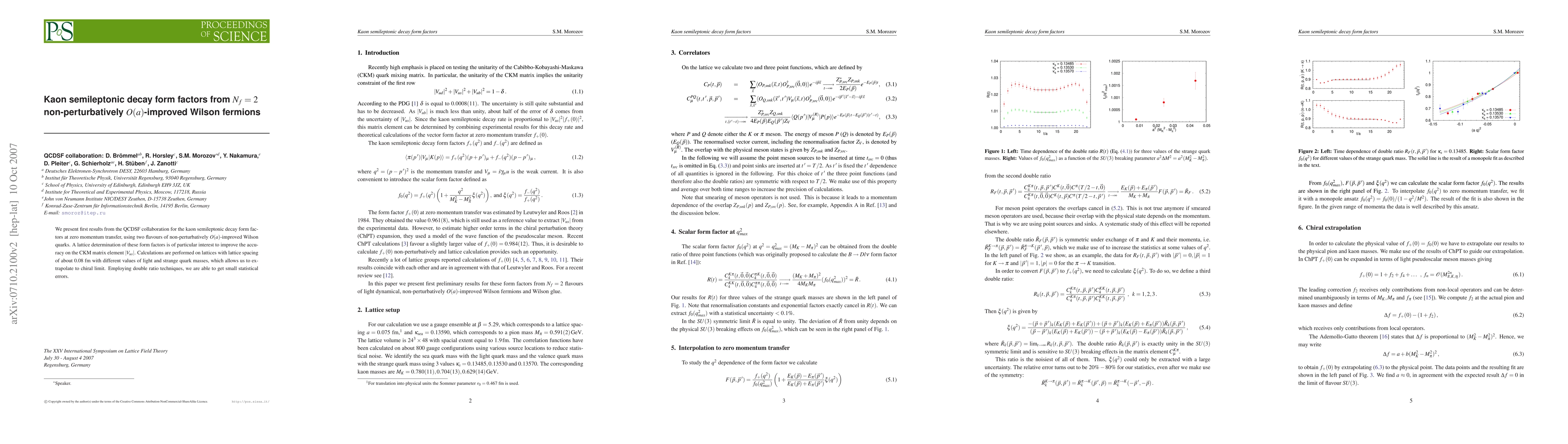 Researchers used lattice QCD to calculate kaon semileptonic decay form factors with improved Wilson quarks, aiming to improve the accuracy of the CKM matrix element |V_us|. They achieved small statistical errors through double ratio techniques.