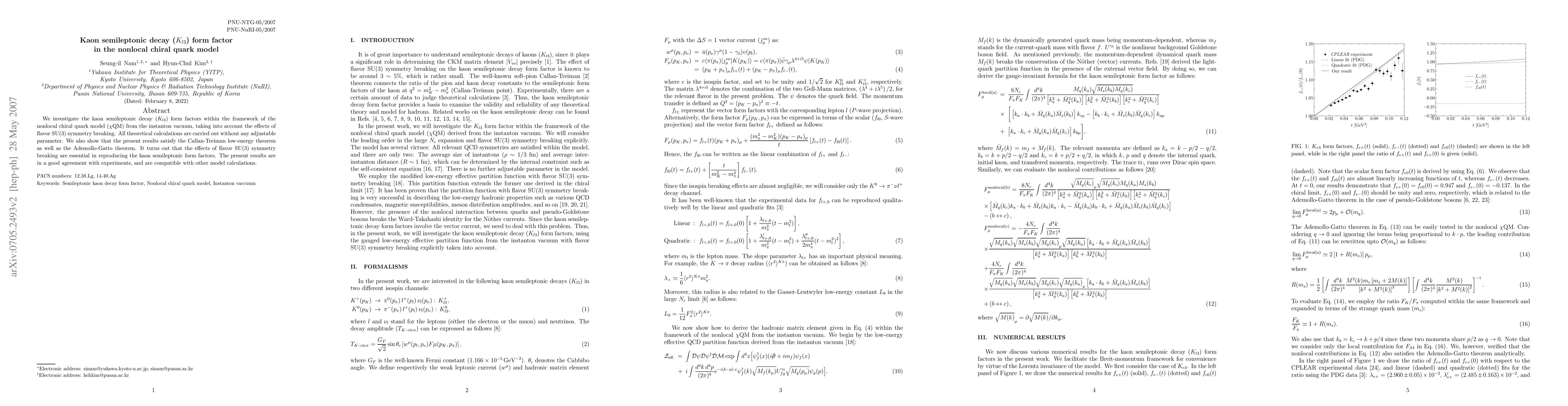This paper explores kaon semileptonic decay (K_{l3}) form factors using the nonlocal chiral quark model, emphasizing the role of flavor SU(3) symmetry breaking. Theoretical calculations align with experimental data and satisfy the Callan-Treiman and Ademollo-Gatto theorems, demonstrating the model's effectiveness without adjustable parameters.