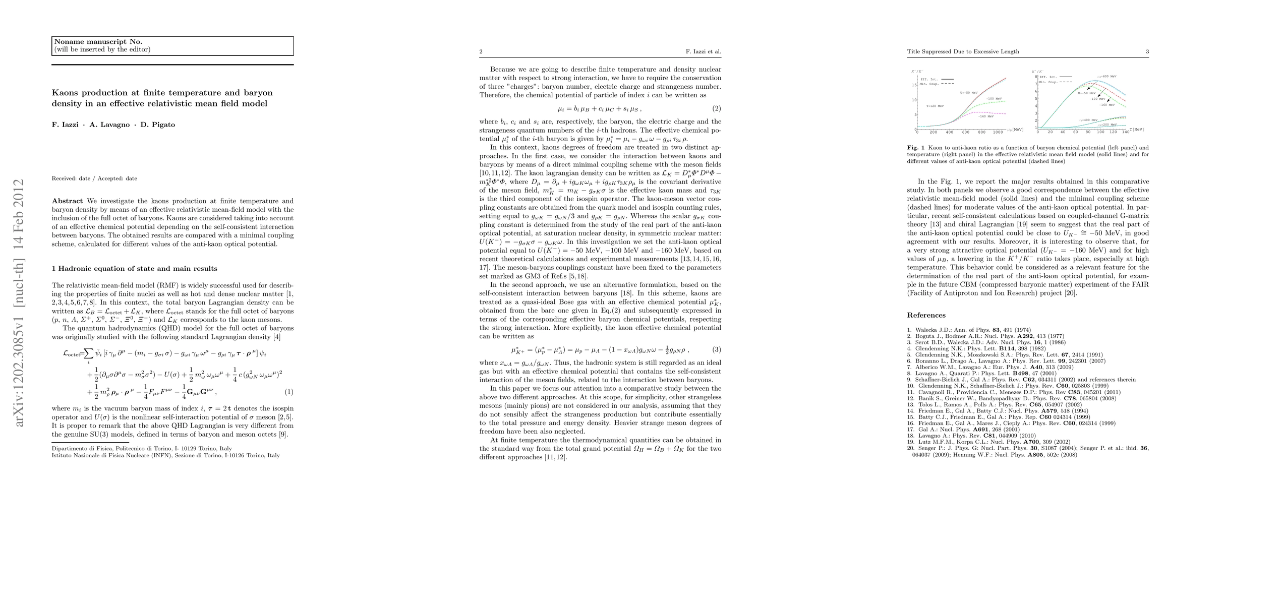 This study explores kaon production at finite temperature and baryon density using an effective relativistic mean field model, incorporating the full baryon octet and an effective chemical potential. Results are compared with a minimal coupling scheme for various anti-kaon optical potentials.
