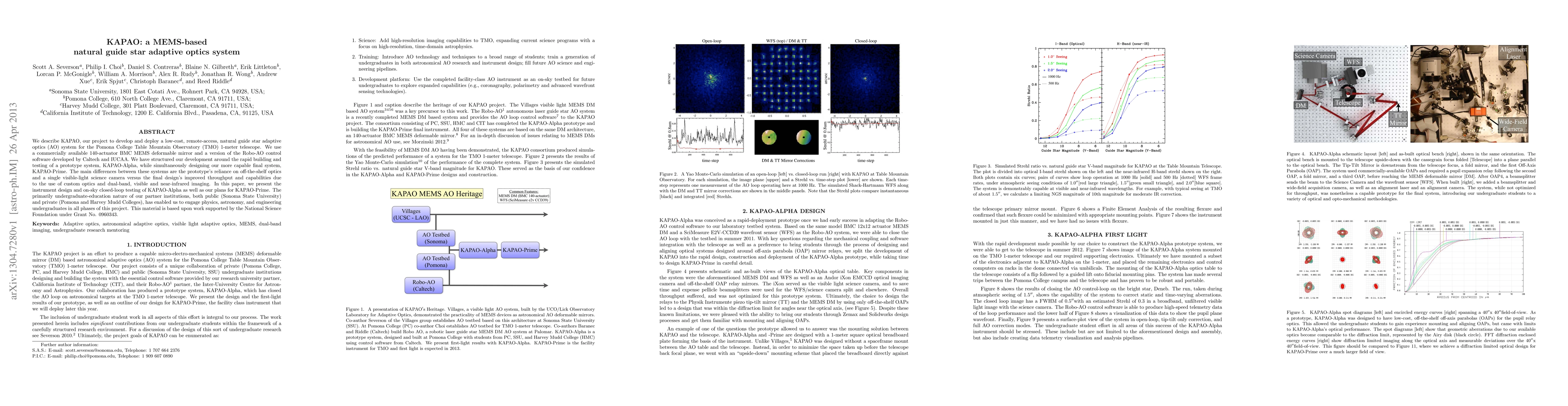 We describe KAPAO, our project to develop and deploy a low-cost, remote-access, natural guide star adaptive optics (AO) system for the Pomona College Table Mountain Observatory (TMO) 1-meter telescope. We use a commercially available 140-actuator BMC MEMS deformable mirror and a version of the Robo-AO control software developed by Caltech and IUCAA. We have structured our development around the rapid building and testing of a prototype system, KAPAO-Alpha, while simultaneously designing our more capable final system, KAPAO-Prime. The main differences between these systems are the prototype's reliance on off-the-shelf optics and a single visible-light science camera versus the final design's improved throughput and capabilities due to the use of custom optics and dual-band, visible and near-infrared imaging. In this paper, we present the instrument design and on-sky closed-loop testing of KAPAO-Alpha as well as our plans for KAPAO-Prime. The primarily undergraduate-education nature of our partner institutions, both public (Sonoma State University) and private (Pomona and Harvey Mudd Colleges), has enabled us to engage physics, astronomy, and engineering undergraduates in all phases of this project. This material is based upon work supported by the National Science Foundation under Grant No. 0960343.