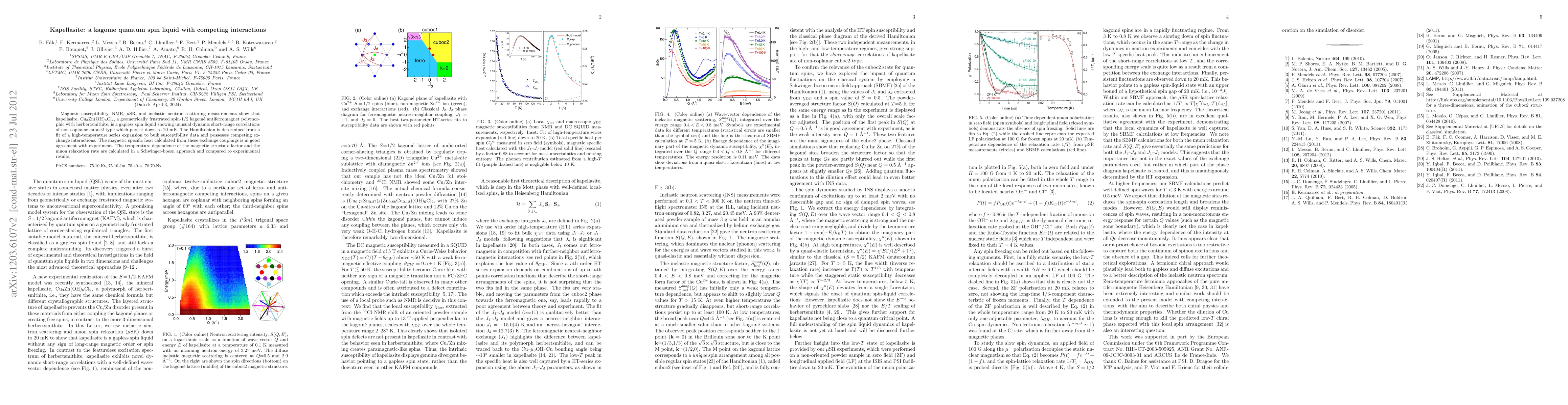 The research employs magnetic susceptibility, NMR, muSR, and inelastic neutron scattering measurements on kapellasite, a geometrically frustrated spin-1/2 kagome antiferromagnet polymorphous with herbertsmithite.
