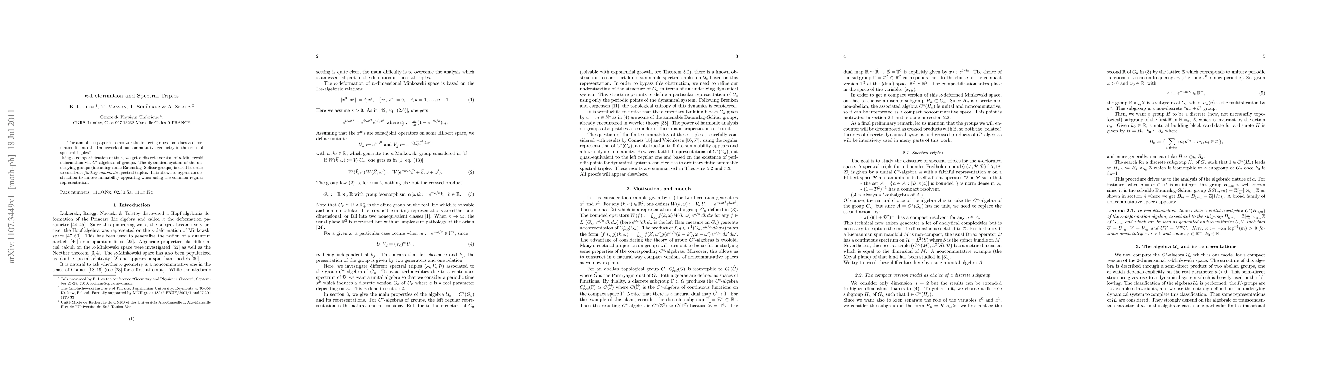 The aim of the paper is to answer the following question: does $\kappa$-deformation fit into the framework of noncommutative geometry in the sense of spectral triples? Using a compactification of time, we get a discrete version of $\kappa$-Minkowski deformation via $C^*$-algebras of groups. The dynamical system of the underlying groups (including some Baumslag--Solitar groups) is used in order to construct \emph{finitely summable} spectral triples. This allows to bypass an obstruction to finite-summability appearing when using the common regular representation.