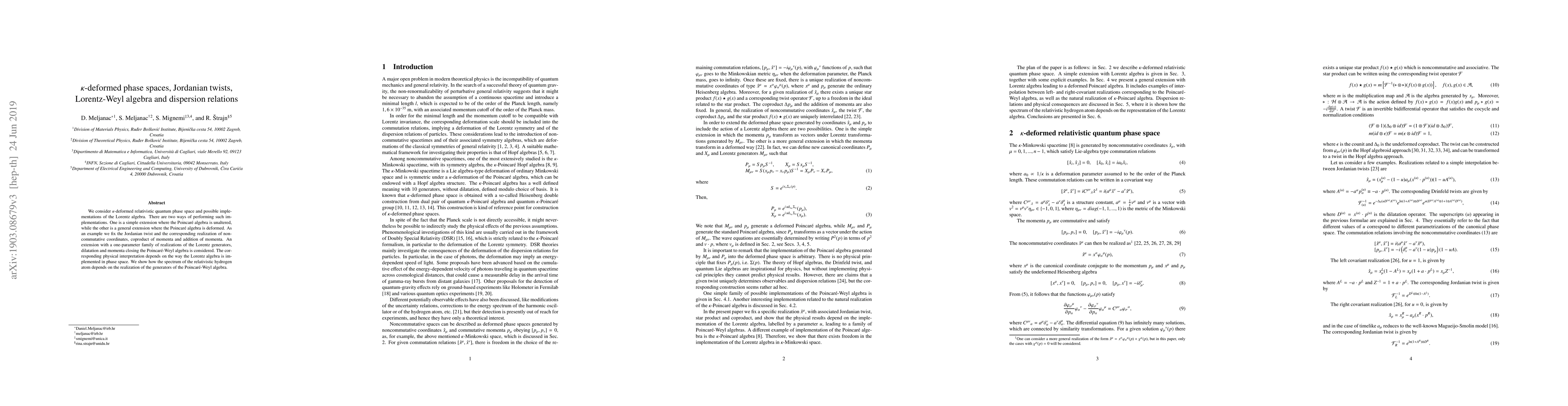 This paper explores $\kappa$-deformed relativistic quantum phase spaces and their implementations of the Lorentz algebra, comparing two methods: a simple extension and a deformed one. It examines the Jordanian twist and its effects on noncommutative coordinates and dispersion relations, ultimately showing how these deformations influence the spectrum of the relativistic hydrogen atom.