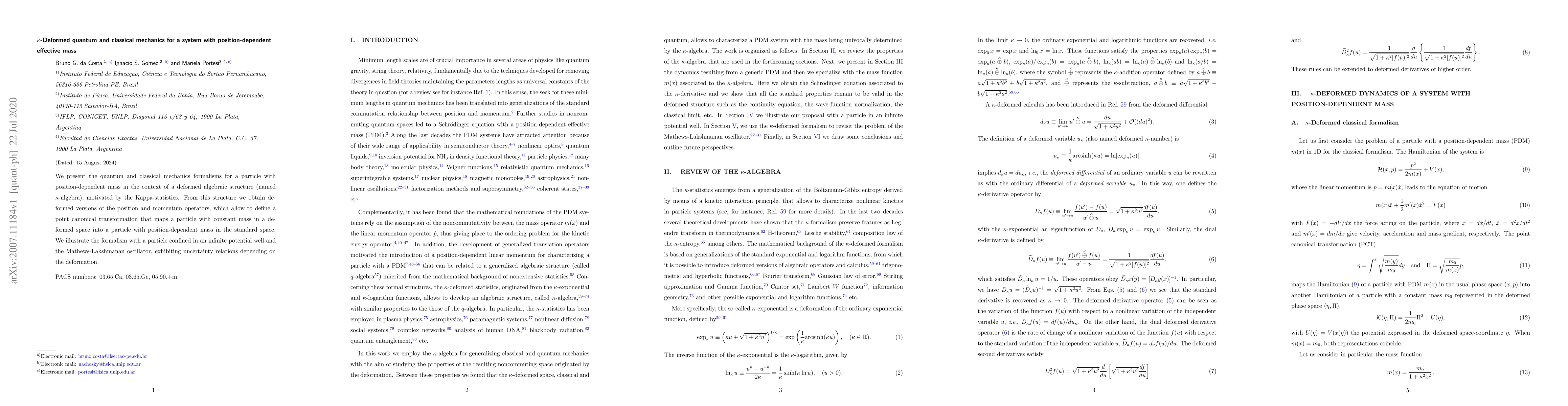 This paper develops quantum and classical mechanics formalisms for particles with position-dependent mass using a deformed algebraic structure called $\kappa$-algebra, motivated by Kappa-statistics. It introduces deformed versions of position and momentum operators, illustrating the formalism with systems like an infinite potential well and Mathews-Lakshmanan oscillator, showing uncertainty relations influenced by the deformation.