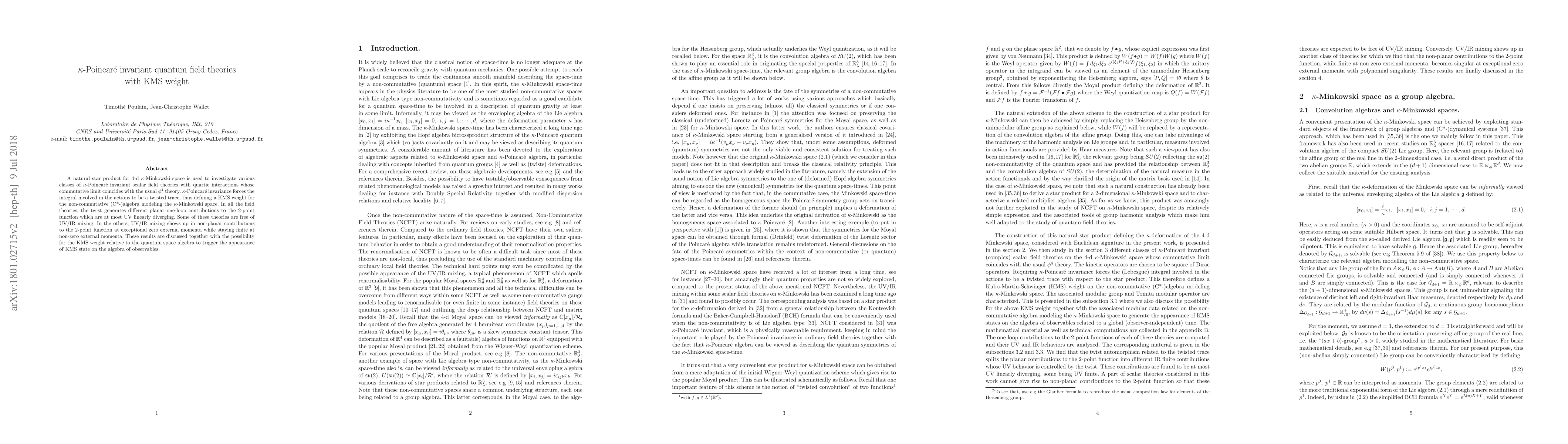 This paper explores $\kappa$-Poincar\'e invariant quantum field theories on $\kappa$-Minkowski space using a star product and KMS weight, revealing different UV behavior and potential UV/IR mixing. The twist induces unique one-loop contributions to the 2-point function and highlights the role of the KMS weight in defining the quantum space algebra.