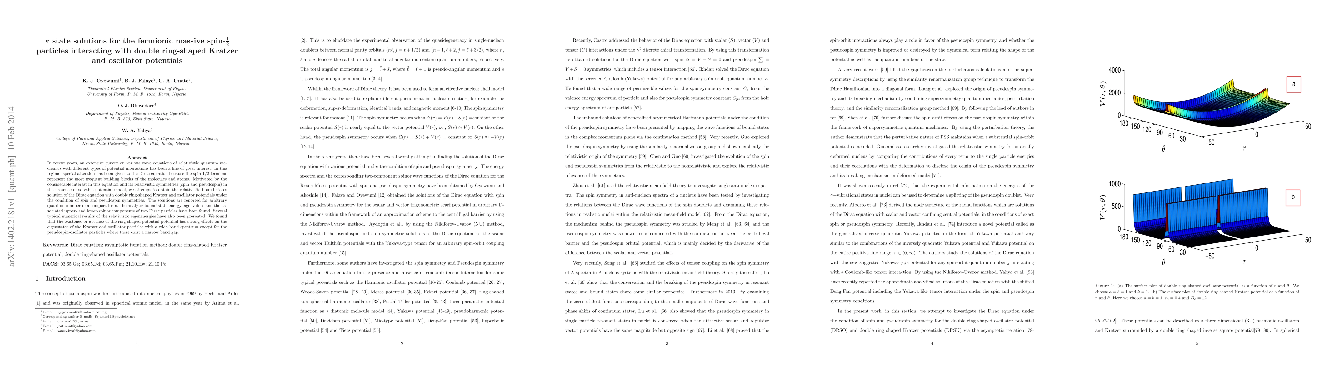 In recent years, an extensive survey on various wave equations of relativistic quantum mechanics with different types of potential interactions has been a line of great interest. In this regime, special attention has been given to the Dirac equation because the spin-1/2 fermions represent the most frequent building blocks of the molecules and atoms. Motivated by the considerable interest in this equation and its relativistic symmetries (spin and pseudospin) in the presence of solvable potential model, we attempt to obtain the relativistic bound states solution of the Dirac equation with double ring-shaped Kratzer and oscillator potentials under the condition of spin and pseudospin symmetries. The solutions are reported for arbitrary quantum number in a compact form. the analytic bound state energy eigenvalues and the associated upper- and lower-spinor components of two Dirac particles have been found. Several typical numerical results of the relativistic eigenenergies have also been presented. We found that the existence or absence of the ring shaped potential potential has strong effects on the eigenstates of the Kratzer and oscillator particles with a wide band spectrum except for the pseudospin-oscillator particles where there exist a narrow band gap.