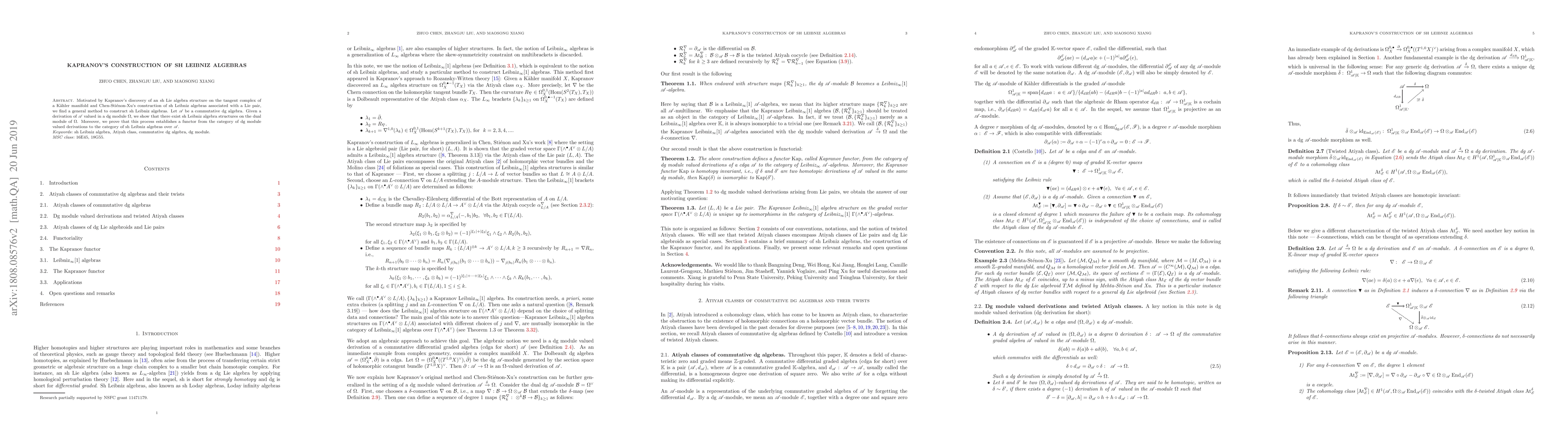 Kapranov's construction of sh Leibniz algebras presents a method to build sh Leibniz algebra structures on the dual of a dg module of derivations for a given commutative dg algebra. This method establishes a functor linking dg module valued derivations to sh Leibniz algebras over the algebra.