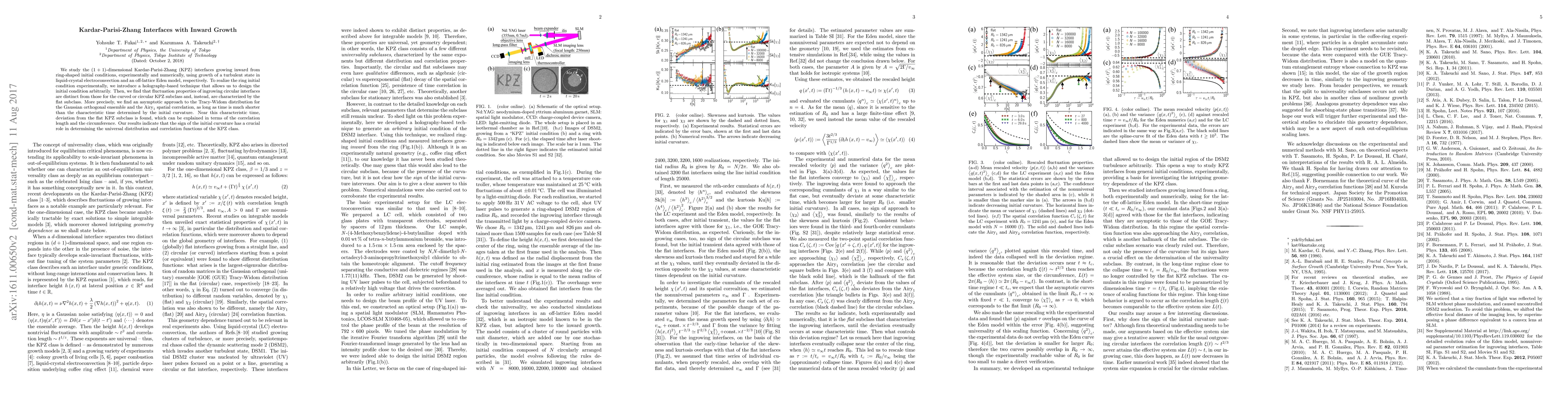 This paper explores $(1+1)$-dimensional Kardar-Parisi-Zhang (KPZ) interfaces growing inward from ring-shaped initial conditions, revealing distinct fluctuation properties characterized by the flat subclass rather than the curved or circular KPZ subclass. The study combines experimental and numerical methods, highlighting the significance of initial curvature in determining universal distribution and correlation functions.