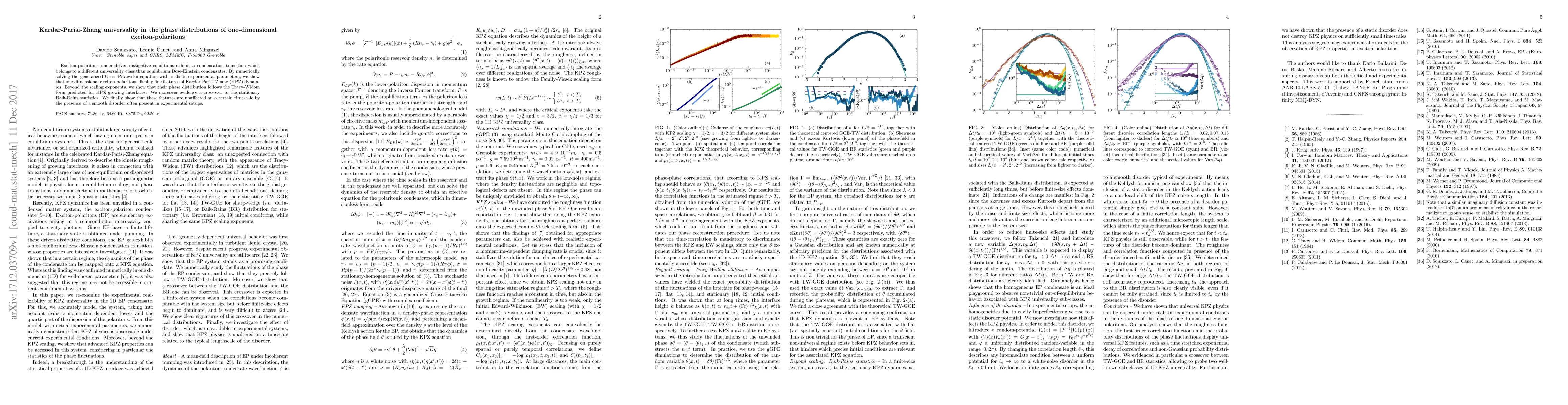 This paper demonstrates that one-dimensional exciton-polaritons in driven-dissipative conditions exhibit Kardar-Parisi-Zhang (KPZ) universality, characterized by the Tracy-Widom form for phase distributions. It also reveals a crossover to stationary Baik-Rains statistics, unaffected by smooth experimental disorder.