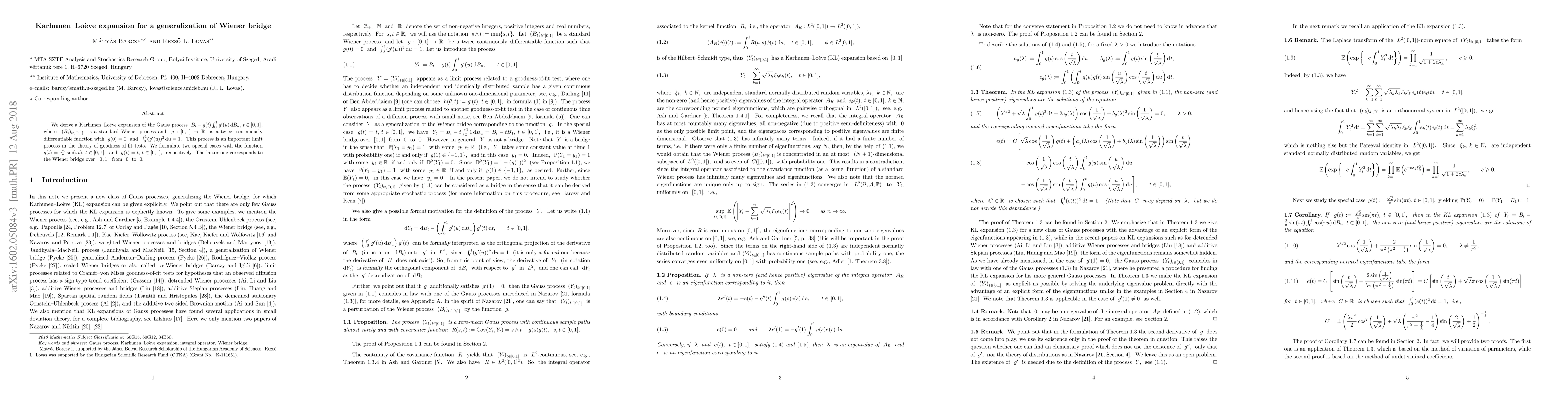 This paper derives a Karhunen-Loève expansion for a generalized Gauss process involving a modified Wiener process, where a twice differentiable function $g$ influences the process. Special cases include the Wiener bridge and a sinusoidal function.