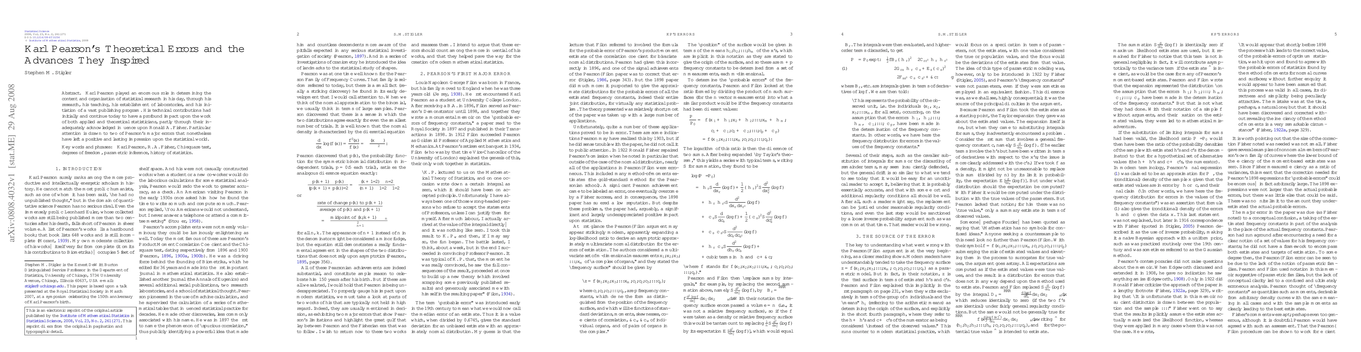 This paper explores Karl Pearson's contributions to statistical research, highlighting two of his major errors that have had a lasting impact on the field. It examines how these errors influenced other statisticians, including Ronald A. Fisher, and their ongoing effects on statistical theory and practice.