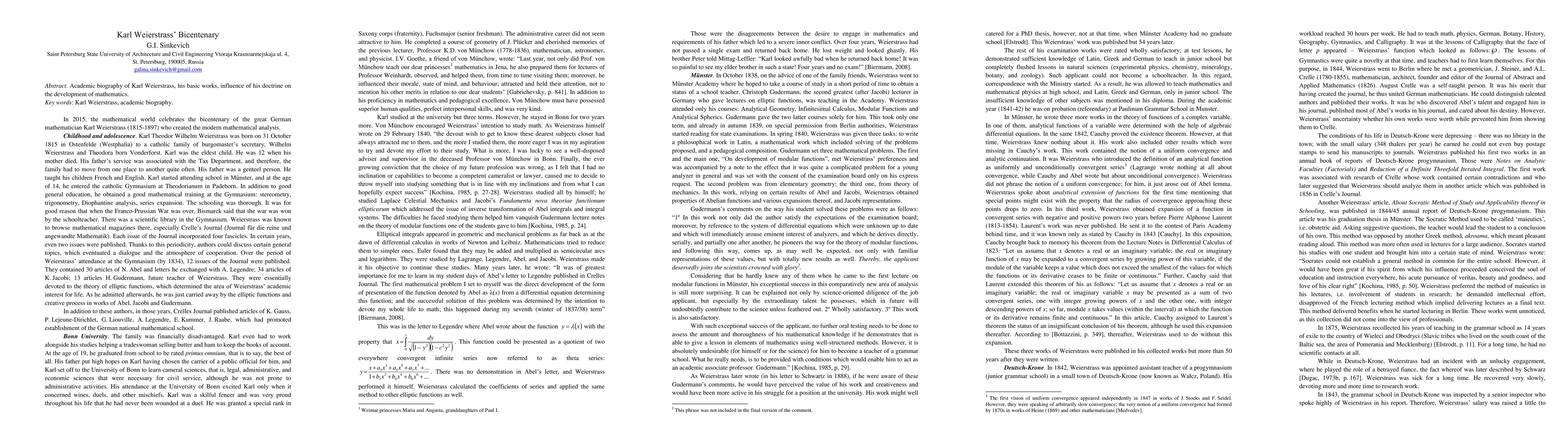 Academic biography of Karl Weierstrass, his basic works, influence of his doctrine on the development of mathematics.