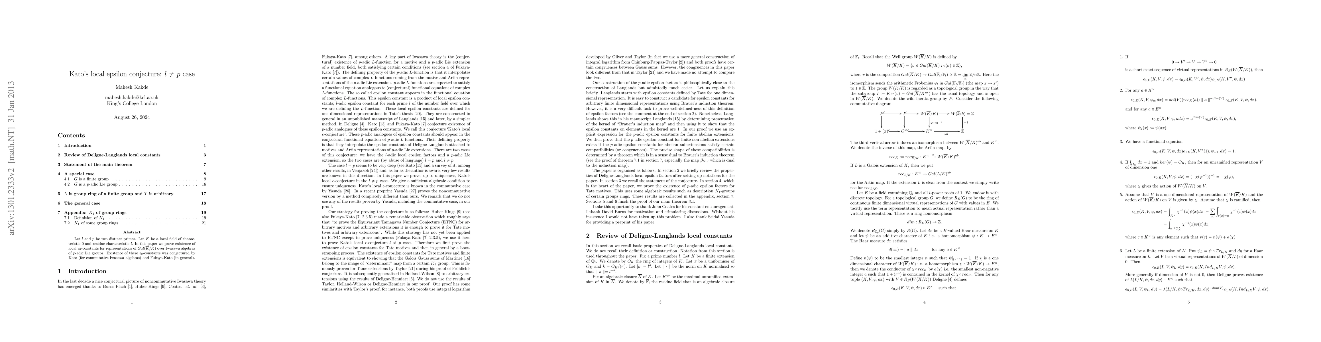 Summary: This paper proves the existence of elements in $p$-adic Iwasawa algebras related to $l$-adic local epsilon constants, as per Kato and Fukaya's conjecture, specifically when $l$ is not equal to $p$. The result supports the broader conjecture in the $l \neq p$ scenario.