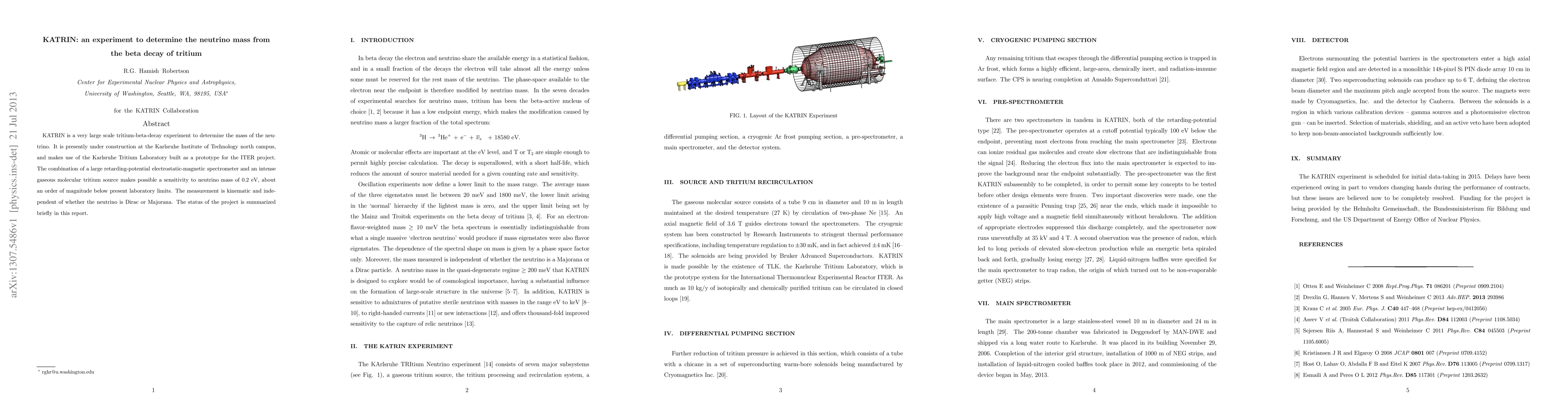 The KATRIN experiment aims to precisely determine the neutrino mass through the analysis of tritium beta decay using a large-scale spectrometer, targeting a sensitivity of 0.2 eV, significantly improving upon current laboratory limits. The project is under construction at the Karlsruhe Institute of Technology.