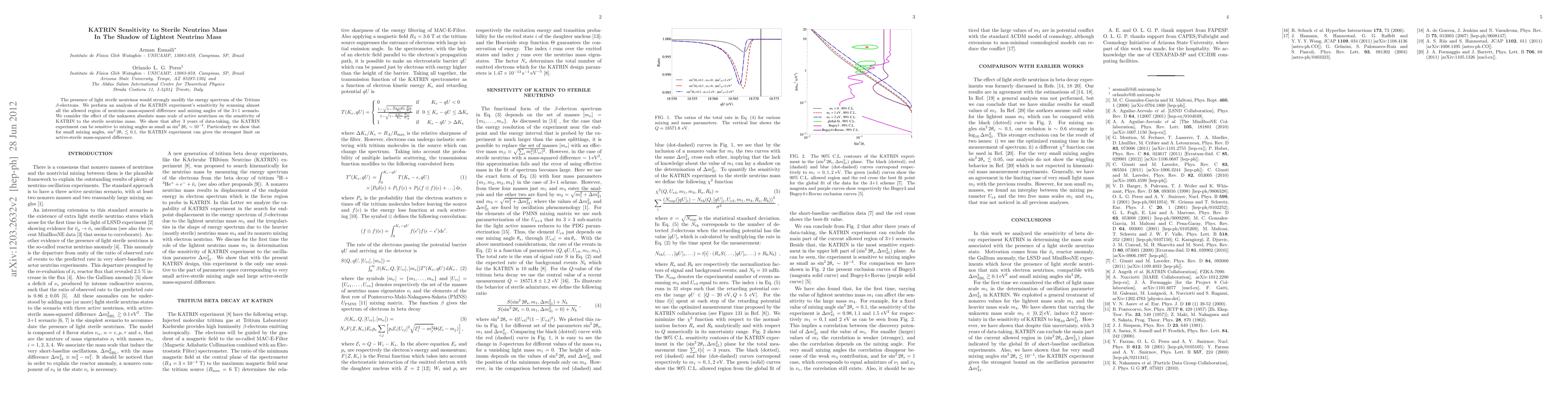 The KATRIN experiment analyzes the sensitivity to sterile neutrino mass by examining the tritium β-electron spectrum, revealing it can detect mixing angles as small as sin^2(2θ_s) ~ 10^-2 after three years. It provides the strongest limits on the active-sterile mass-squared difference for small mixing angles, sin^2(2θ_s) < 0.1.