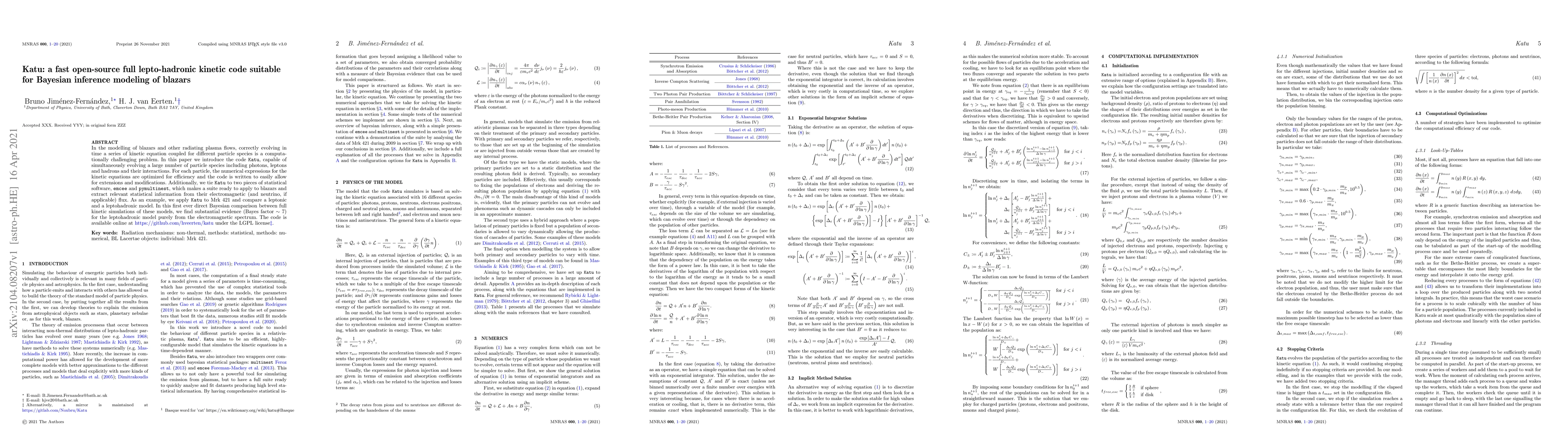 A new open-source code called Katu has been developed to simulate kinetic interactions in blazars, showing substantial evidence for a leptohadronic model over a leptonic one, with a Bayes factor of around 7.
