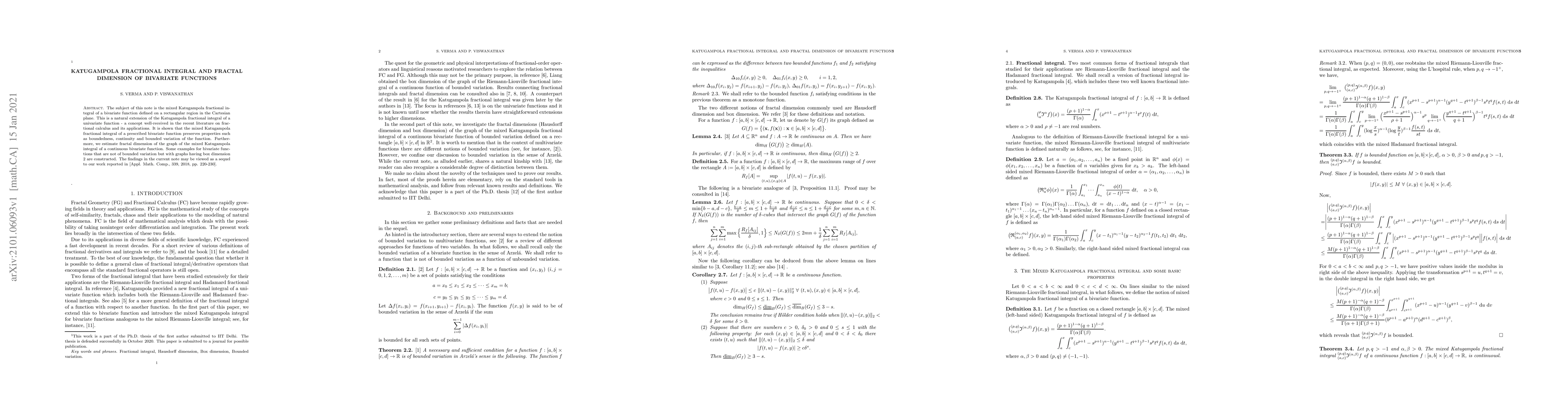 Researchers extend Katugampola fractional integral to bivariate functions, showing it preserves key properties like boundedness and continuity, while estimating the fractal dimension of its graph.
