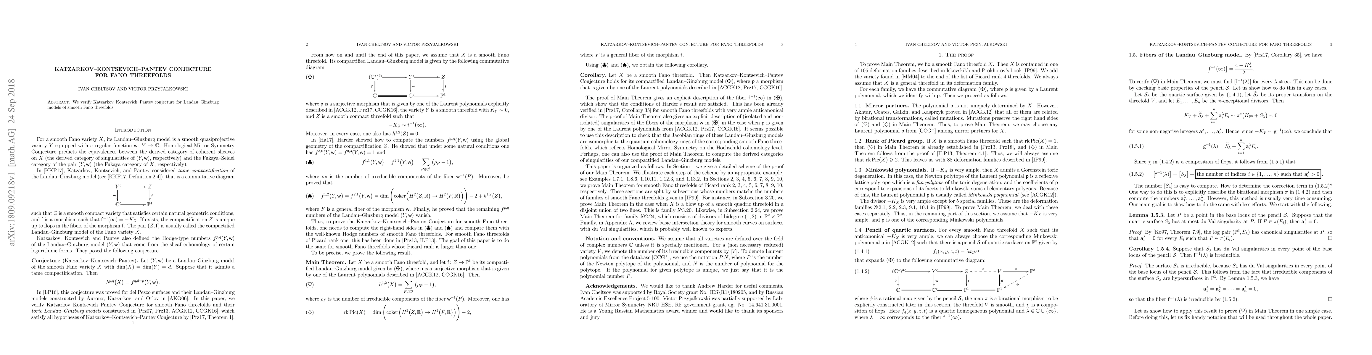 Summary: This paper verifies the Katzarkov-Kontsevich-Pantev conjecture for Landau-Ginzburg models associated with smooth Fano threefolds, providing strong evidence for the conjecture's validity in this specific geometric context.