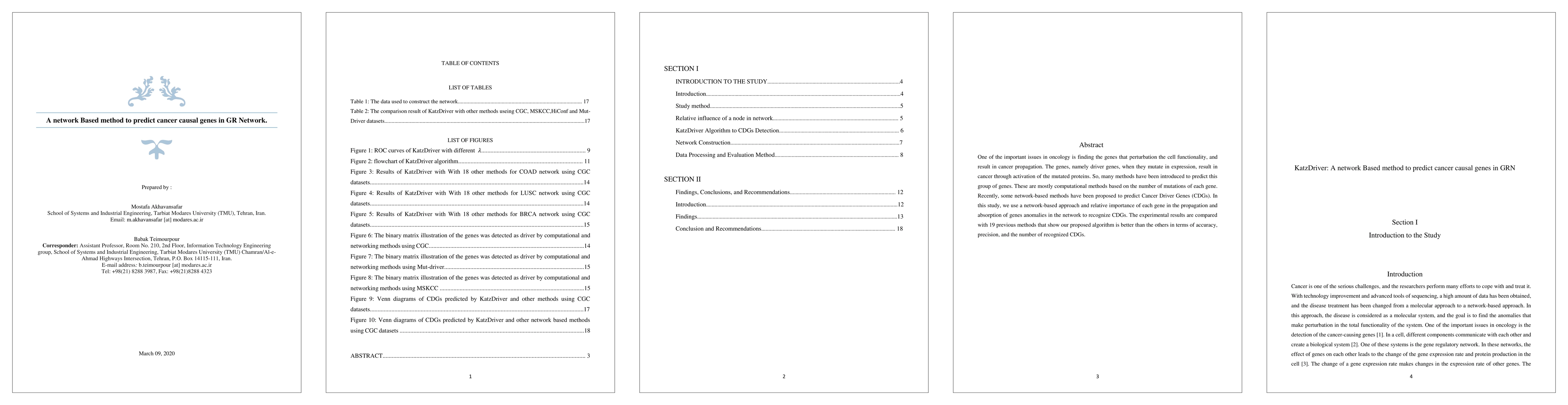 Title: KatzDriver: A network Based method to predict cancer causal genes in GR Network Summary: This study introduces KatzDriver, a network-based method to predict cancer driver genes by evaluating gene importance in network anomaly propagation. Experimental results show superior accuracy, precision, and identification of cancer driver genes compared to 19 previous computational methods.
