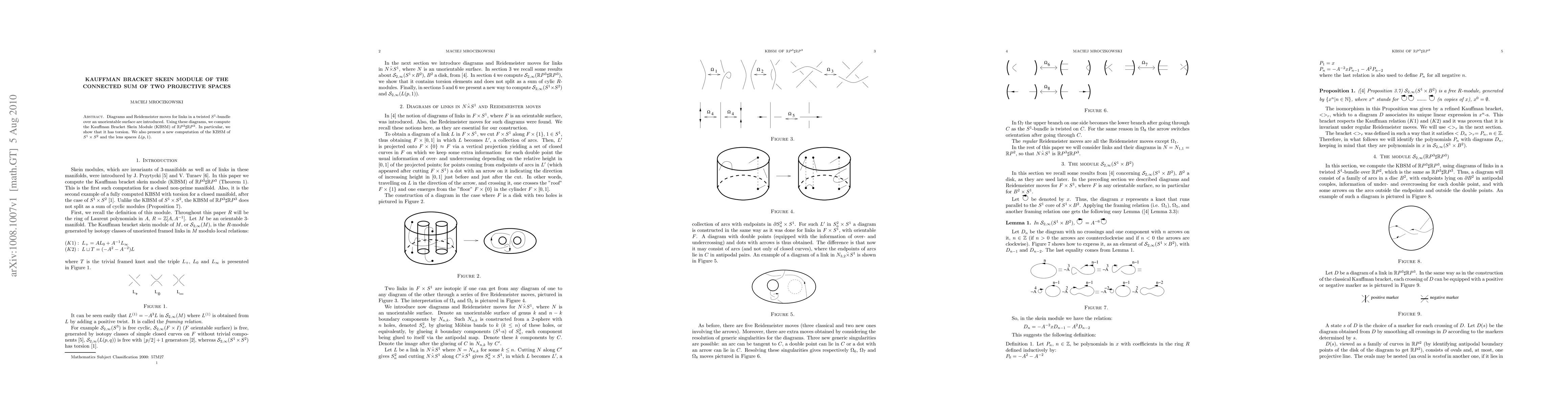 This research introduces diagrams and Reidemeister moves for twisted S^1-bundles over unorientable surfaces to compute the Kauffman Bracket Skein Module (KBSM) of the connected sum of two projective spaces, demonstrating its torsion. Additionally, it presents new computations for the KBSM of S^1 x S^2 and lens spaces L(p,1).