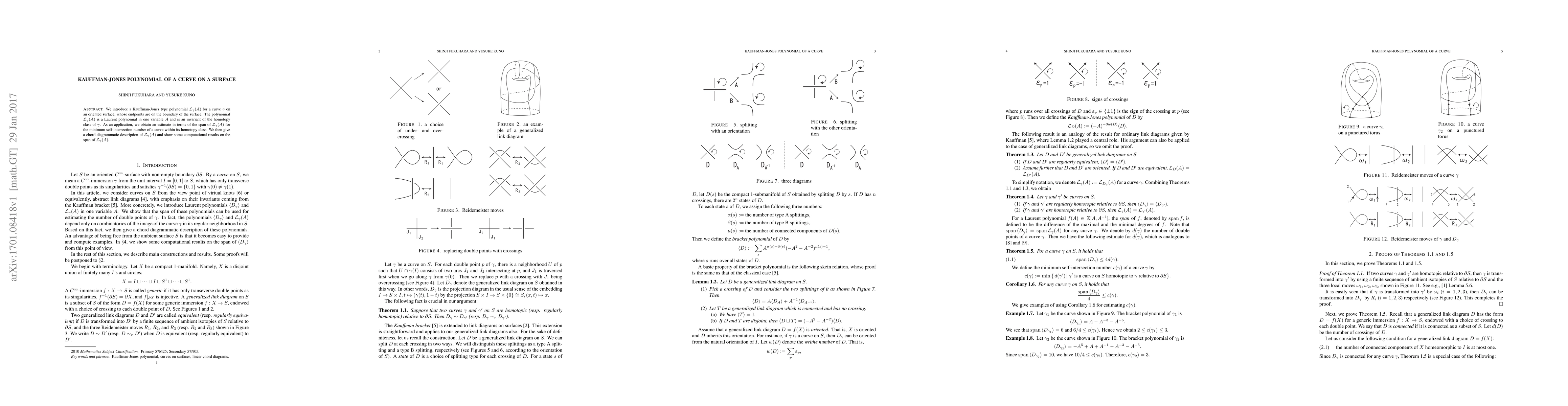 We introduce a Kauffman-Jones type polynomial $\mathcal{L}_{\gamma}(A)$ for a curve $\gamma$ on an oriented surface, whose endpoints are on the boundary of the surface. The polynomial $\mathcal{L}_{\gamma}(A)$ is a Laurent polynomial in one variable $A$ and is an invariant of the homotopy class of $\gamma$. As an application, we obtain an estimate in terms of the span of $\mathcal{L}_{\gamma}(A)$ for the minimum self-intersection number of a curve within its homotopy class. We then give a chord diagrammatic description of $\mathcal{L}_{\gamma}(A)$ and show some computational results on the span of $\mathcal{L}_{\gamma}(A)$.