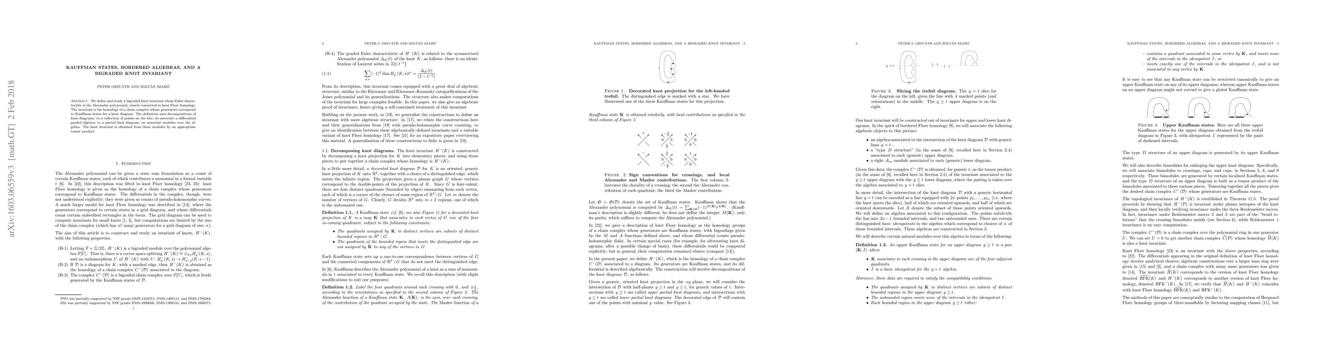 We define and study a bigraded knot invariant whose Euler characteristic is the Alexander polynomial, closely connected to knot Floer homology. The invariant is the homology of a chain complex whose generators correspond to Kauffman states for a knot diagram. The definition uses decompositions of knot diagrams: to a collection of points on the line, we associate a differential graded algebra; to a partial knot diagram, we associate modules over the algebra. The knot invariant is obtained from these modules by an appropriate tensor product.
