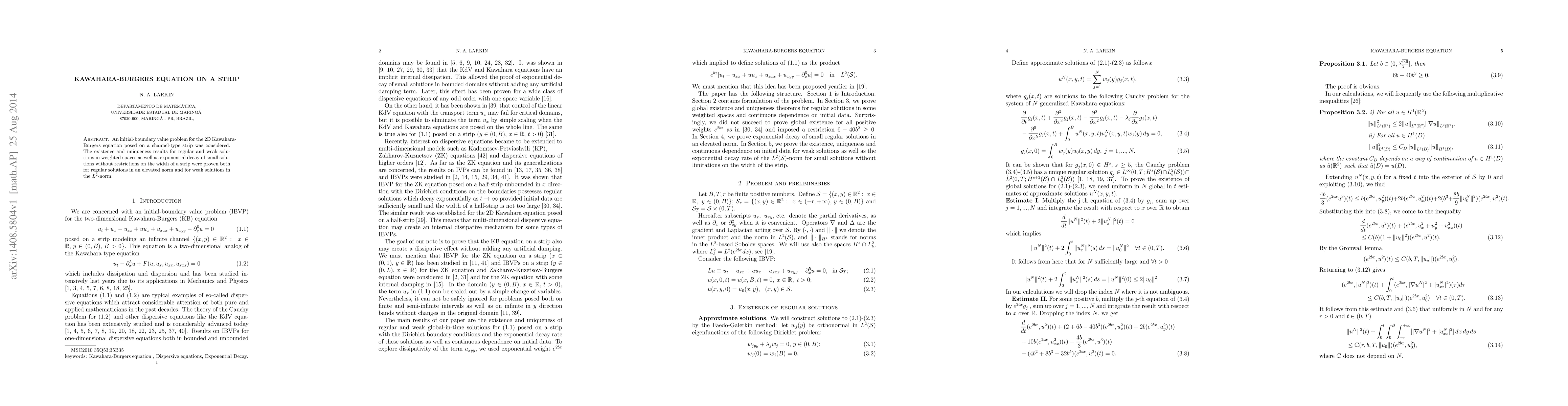 The paper proves existence, uniqueness, and exponential decay for both regular and weak solutions of the 2D Kawahara-Burgers equation on a strip, without width restrictions, in weighted spaces and $L^2$-norm. The results apply to elevated norms for regular solutions and $L^2$-norm for weak solutions.