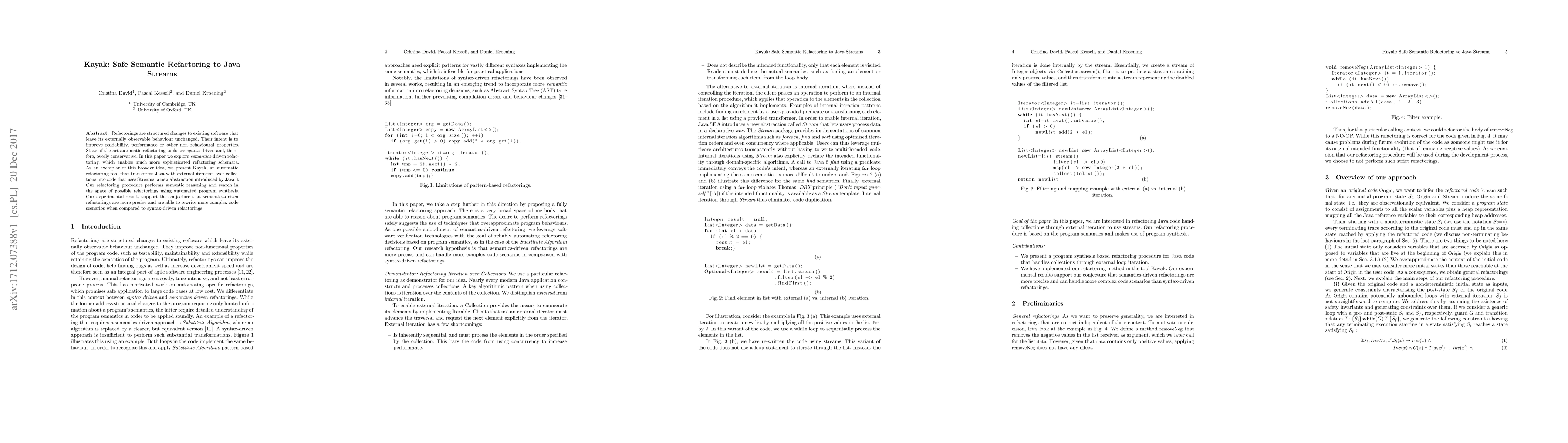 A new refactoring tool called Kayak improves Java code readability and performance by transforming external iteration over collections into Streams, leveraging semantic reasoning and automated program synthesis.