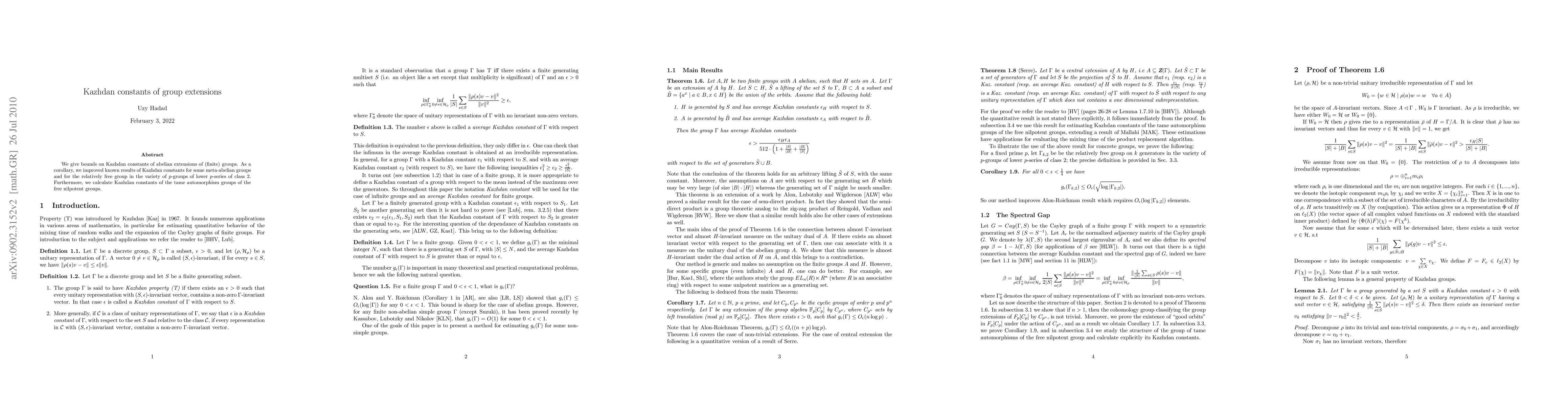 This paper provides new bounds on the Kazhdan constants for abelian extensions of finite groups, improving existing results for meta-abelian groups and the relatively free group in the variety of $p$-groups of class 2. It also calculates Kazhdan constants for tame automorphism groups of free nilpotent groups.