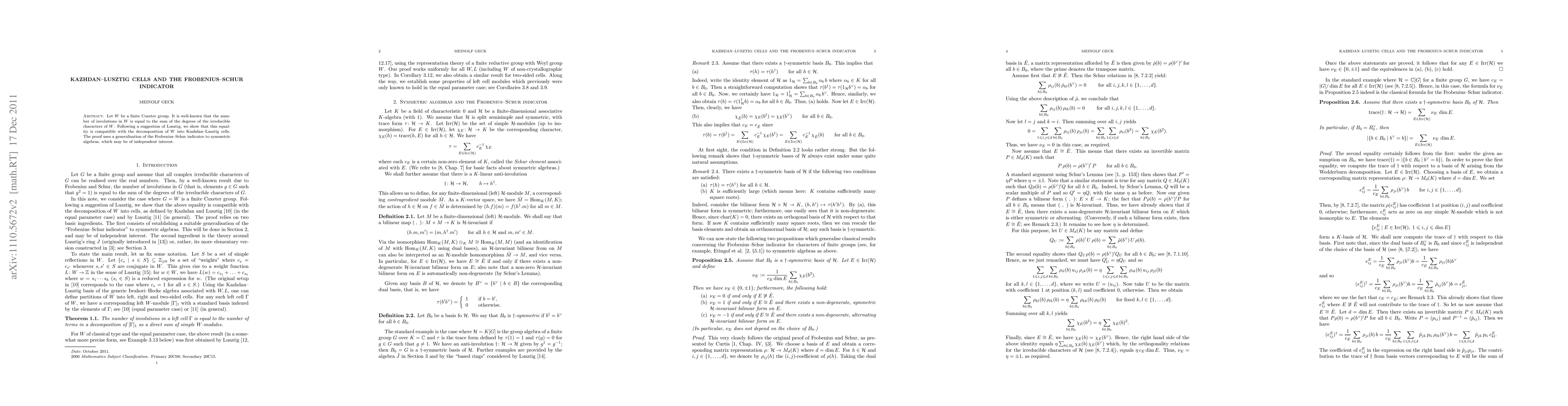 Let $W$ be a finite Coxeter group. It is well-known that the number of involutions in $W$ is equal to the sum of the degrees of the irreducible characters of $W$. Following a suggestion of Lusztig, we show that this equality is compatible with the decomposition of $W$ into Kazhdan--Lusztig cells. The proof uses a generalisation of the Frobenius--Schur indicator to symmetric algebras, which may be of independent interest.