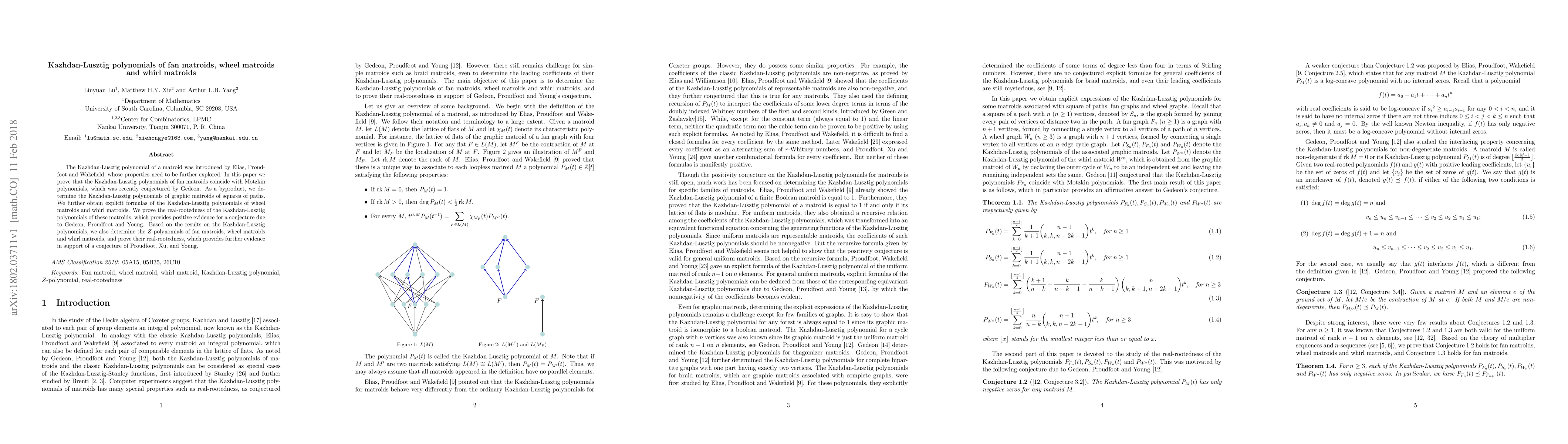 This paper explores the Kazhdan-Lusztig polynomials of fan, wheel, and whirl matroids, proving their coincidence with Motzkin polynomials for fan matroids and providing explicit formulas for wheel and whirl matroids. It also confirms the real-rootedness of these polynomials, supporting relevant conjectures.