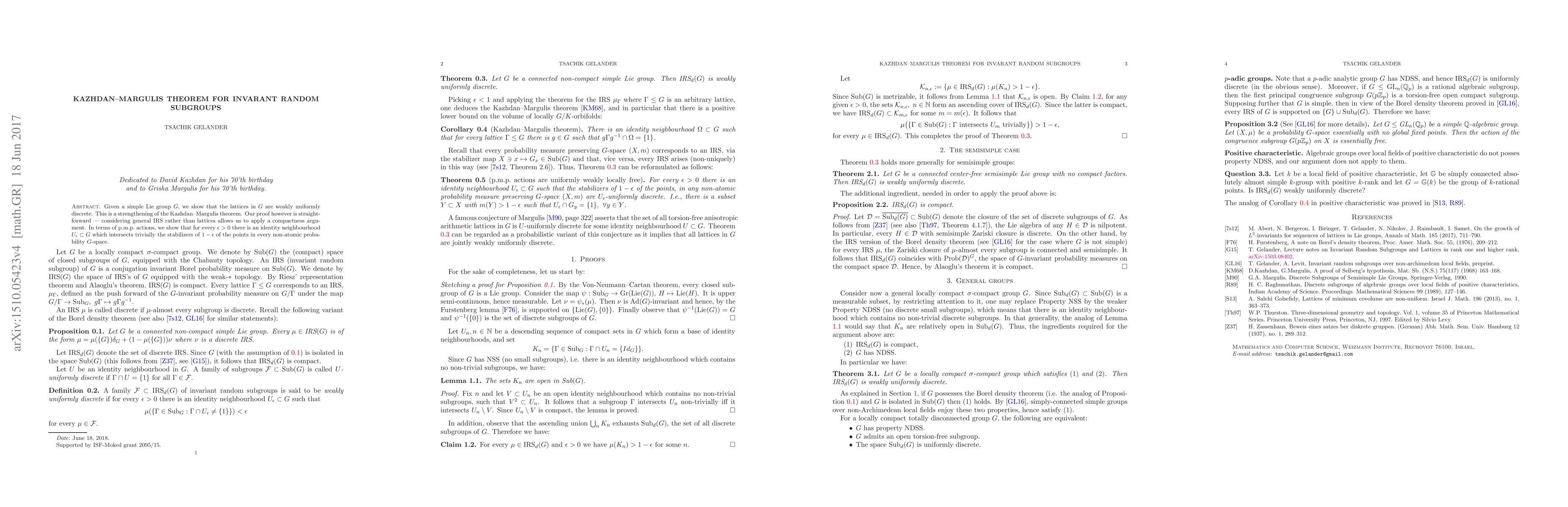 Given a simple Lie group $G$, we show that the lattices in $G$ are weakly uniformly discrete. This is a strengthening of the Kazhdan-Margulis theorem. Our proof however is straightforward --- considering general IRS rather than lattices allows us to apply a compactness argument. In terms of p.m.p. actions, we show that for every $\epsilon$ there is an identity neighbourhood $U$ which intersects trivially the stabilizers of $1-\epsilon$ of the points in every non-atomic $G$-space.