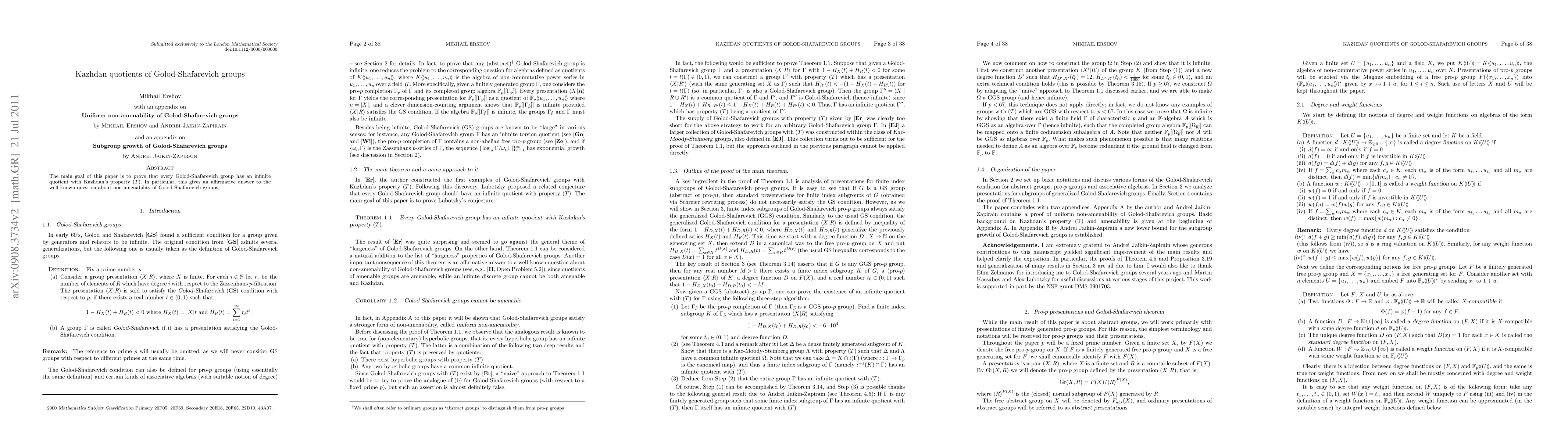 This paper demonstrates that every Golod-Shafarevich group possesses an infinite quotient with Kazhdan's property $(T)$, confirming the non-amenability of such groups.