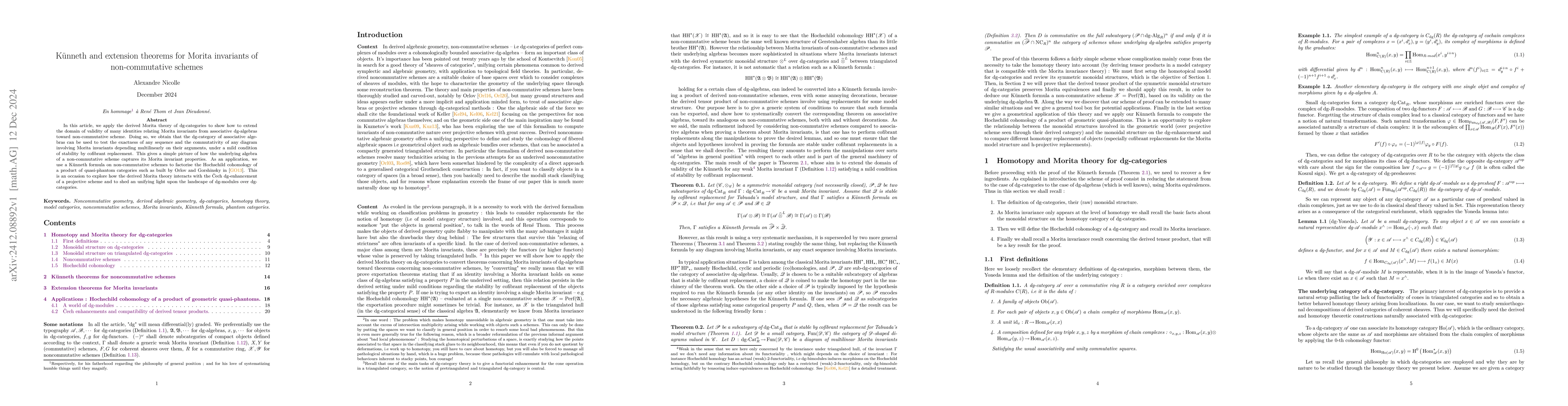 In this article, we apply the derived Morita theory of dg-categories to show how to extend the domain of validity of many identities relating Morita invariants from associative dg-algebras toward non-commutative scheme. Doing so, we obtain that the dg-category of associative algebras can be used to test the exactness of any sequence and the commutativity of any diagram involving Morita invariants depending multilinearly on their arguments, under a mild condition of stability by cofibrant replacement. This gives a simple picture of how the underlying algebra of a non-commutative scheme captures its Morita invariant properties. As an application, we use a K\"unneth formula on non-commutative schemes to factorise the Hochschild cohomology of a product of quasi-phantom categories such as built by Orlov and Gorshinsky in [GO13]. This is an occasion to explore how the derived Morita theory interacts with the \v{C}ech dg-enhancement of a projective scheme and to shed an unifying light upon the landscape of dg-modules over dg-categories.