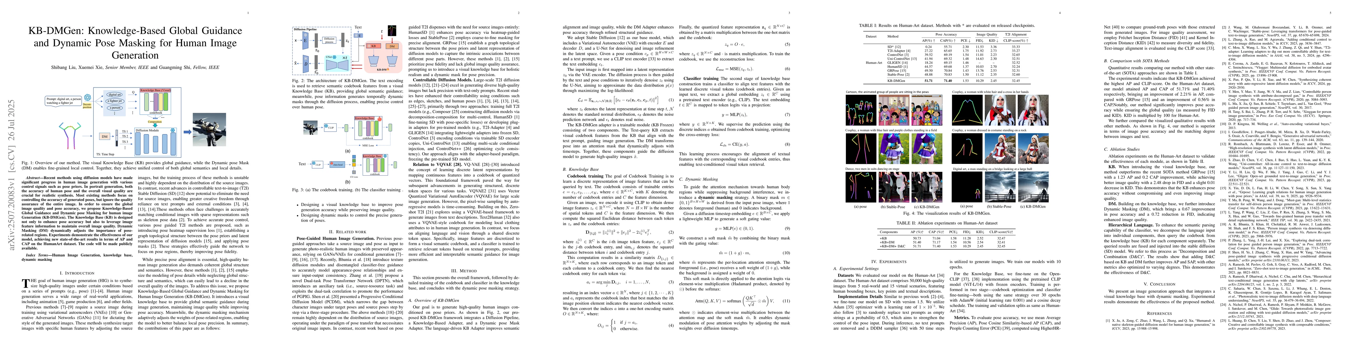 Recent methods using diffusion models have made significant progress in human image generation with various control signals such as pose priors. In portrait generation, both the accuracy of human pose and the overall visual quality are crucial for realistic synthesis. Most existing methods focus on controlling the accuracy of generated poses, but ignore the quality assurance of the entire image. In order to ensure the global image quality and pose accuracy, we propose Knowledge-Based Global Guidance and Dynamic pose Masking for human image Generation (KB-DMGen). The Knowledge Base (KB) is designed not only to enhance pose accuracy but also to leverage image feature information to maintain overall image quality. Dynamic Masking (DM) dynamically adjusts the importance of pose-related regions. Experiments demonstrate the effectiveness of our model, achieving new state-of-the-art results in terms of AP and CAP on the HumanArt dataset. The code will be made publicly available.