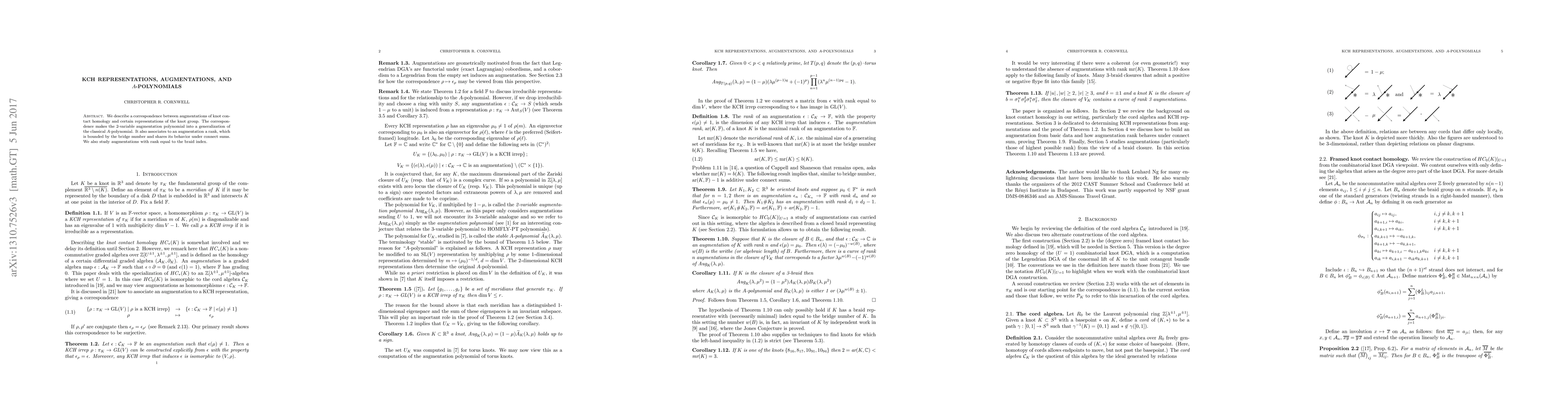 This paper establishes a link between augmentations of the knot group and specific representations, generalizing the classical $A$-polynomial. It introduces a rank for augmentations, which is constrained by the bridge number and mirrors its behavior under connect sums.