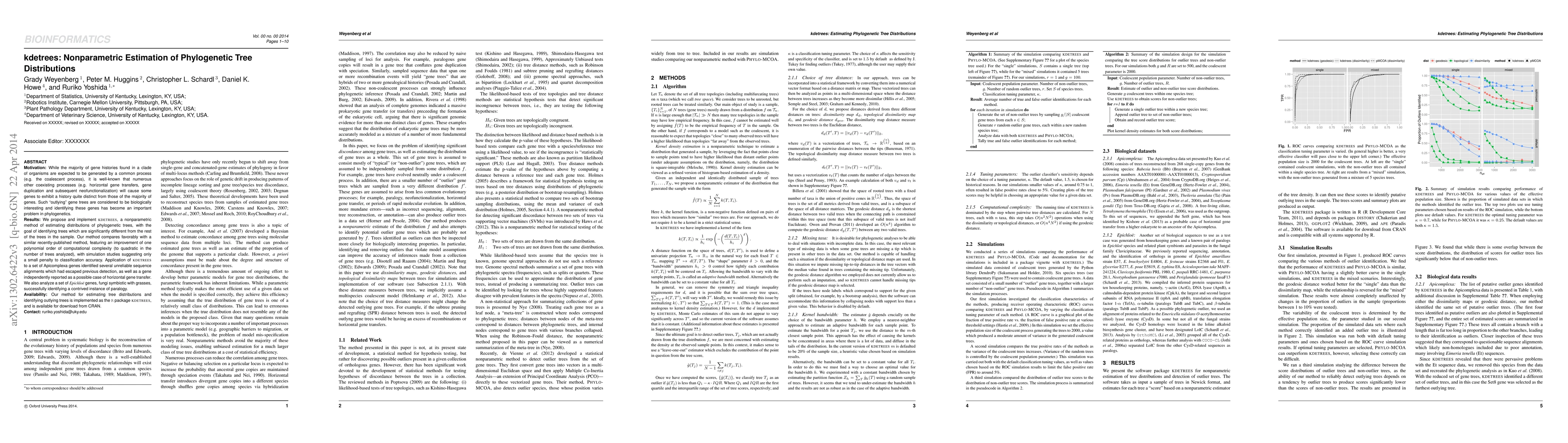 The method uses nonparametric estimation to compare phylogenetic tree distributions and has been successfully applied to identify outlying trees in Apicomplexa genes and fungi symbiotic with grasses.