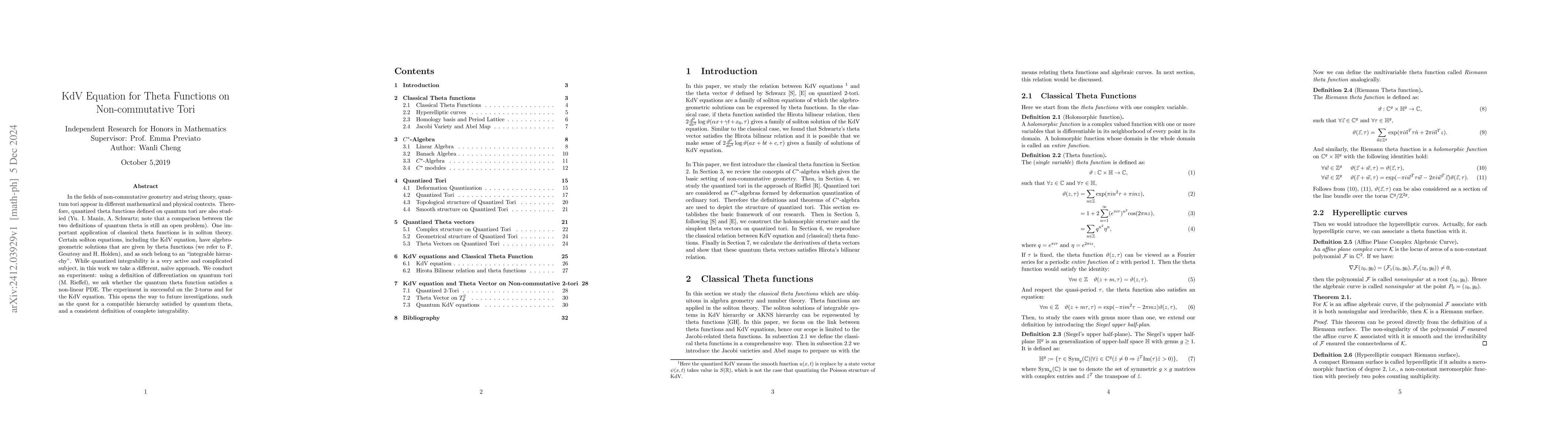 In the fields of non-commutative geometry and string theory, quantum tori appear in different mathematical and physical contexts. Therefore, quantized theta functions defined on quantum tori are also studied (Yu. I. Manin, A. Schwartz; note that a comparison between the two definitions of quantum theta is still an open problem). One important application of classical theta functions is in soliton theory. Certain soliton equations, including the KdV equation, have algebro-geometric solutions that are given by theta functions (we refer to F. Gesztesy and H. Holden), and as such belong to an "integrable hierarchy." While quantized integrability is a very active and complicated subject, in this work we take a different, naive approach. We conduct an experiment: using a definition of differentiation on quantum tori (M. Rieffel), we ask whether the quantum theta function satisfies non-linear PDE. The experiment is successful on the 2-torus and for the KdV equation. This opens the way to future investigations, such as the quest for a compatible hierarchy satisfied by quantum theta, and a consistent definition of complete integrability.