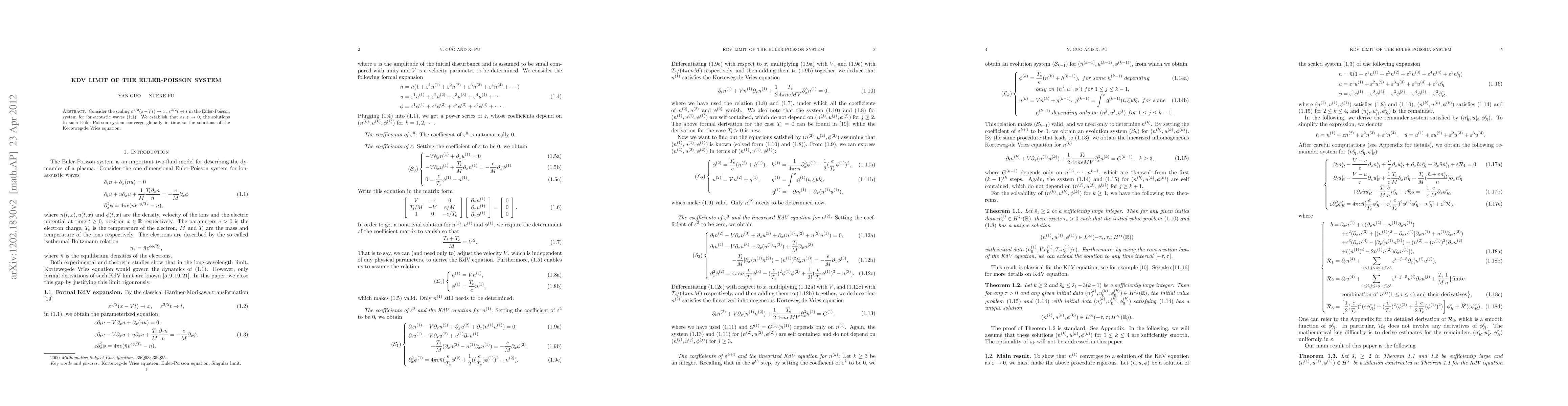 This paper investigates the scaling behavior of the Euler-Poisson system governing ion-acoustic waves, demonstrating that as a small parameter $\varepsilon$ approaches zero, the system's solutions converge globally to those of the Korteweg-de Vries (KdV) equation.