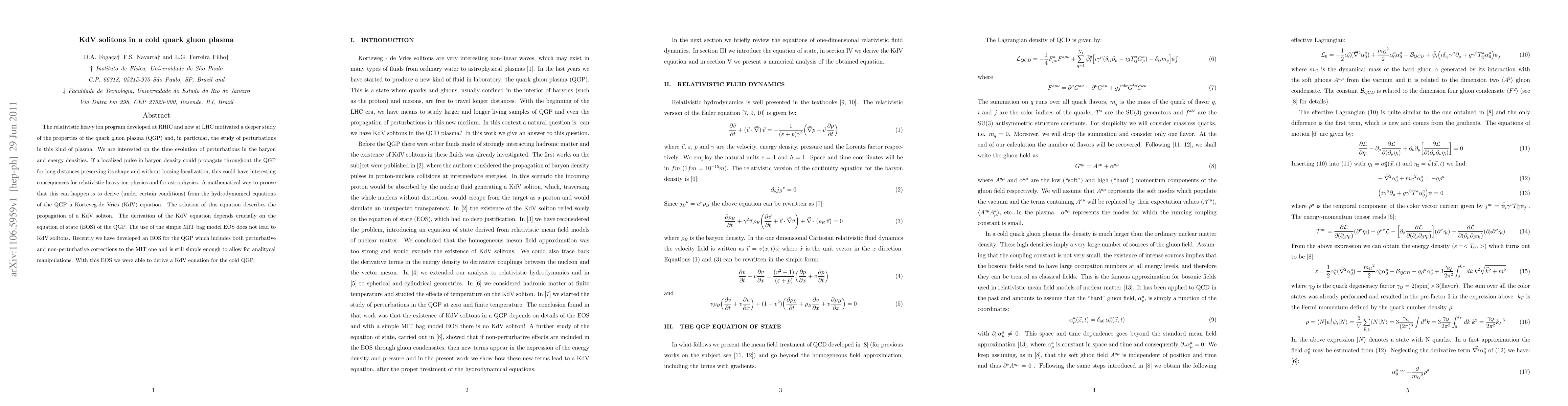 Researchers derived a Korteveg-de Vries equation for a cold quark gluon plasma using a new equation of state, which predicts the existence of solitons that could travel long distances without losing shape or localization.