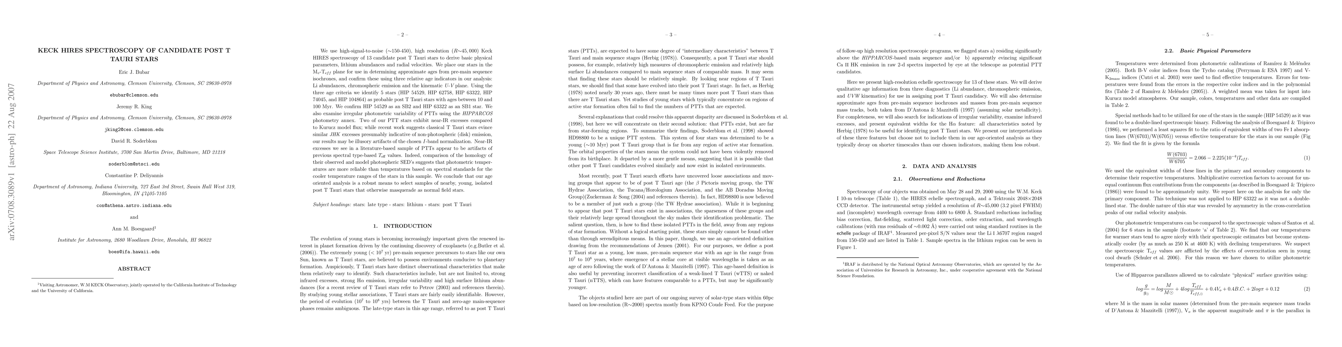 This study uses high-resolution spectroscopy from the Keck telescope to analyze 13 candidate post T Tauri stars, identifying five as probable post T Tauri stars aged between 10 and 100 Myr based on lithium abundances, chromospheric emission, and kinematic data. The analysis suggests that near-IR excesses previously observed may be artifacts, and highlights the reliability of photometric temperatures over spectral type-based temperatures for cooler stars.