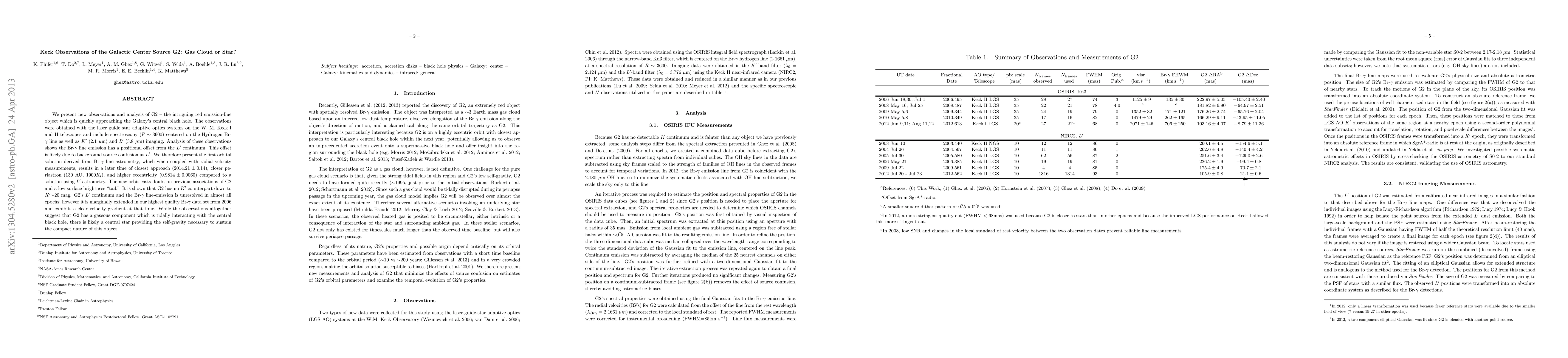 We present new observations and analysis of G2 - the intriguing red emission-line object which is quickly approaching the Galaxy's central black hole. The observations were obtained with the laser guide star adaptive optics systems on the W. M. Keck I and II telescopes and include spectroscopy (R ~ 3600) centered on the Hydrogen Br-gamma line as well as K' (2.1 micrometer) and L' (3.8 micrometer) imaging. Analysis of these observations shows the Br-gamma line emission has a positional offset from the L' continuum. This offset is likely due to background source confusion at L'. We therefore present the first orbital solution derived from Br-gamma line astrometry, which when coupled with radial velocity measurements, results in a later time of closest approach (2014.21 +/- 0.14), closer periastron (130 AU, 1900Rs), and higher eccentricity (0.9814 +/- 0.0060) compared to a solution using L' astrometry. The new orbit casts doubt on previous associations of G2 and a low surface brightness "tail". It is shown that G2 has no K' counterpart down to K' ~ 20 mag. G2's L' continuum and the Br-gamma line-emission is unresolved in almost all epochs; however it is marginally extended in our highest quality Br-gamma data set from 2006 and exhibits a clear velocity gradient at that time. While the observations altogether suggest that G2 has a gaseous component which is tidally interacting with the central black hole, there is likely a central star providing the self-gravity necessary to sustain the compact nature of this object.