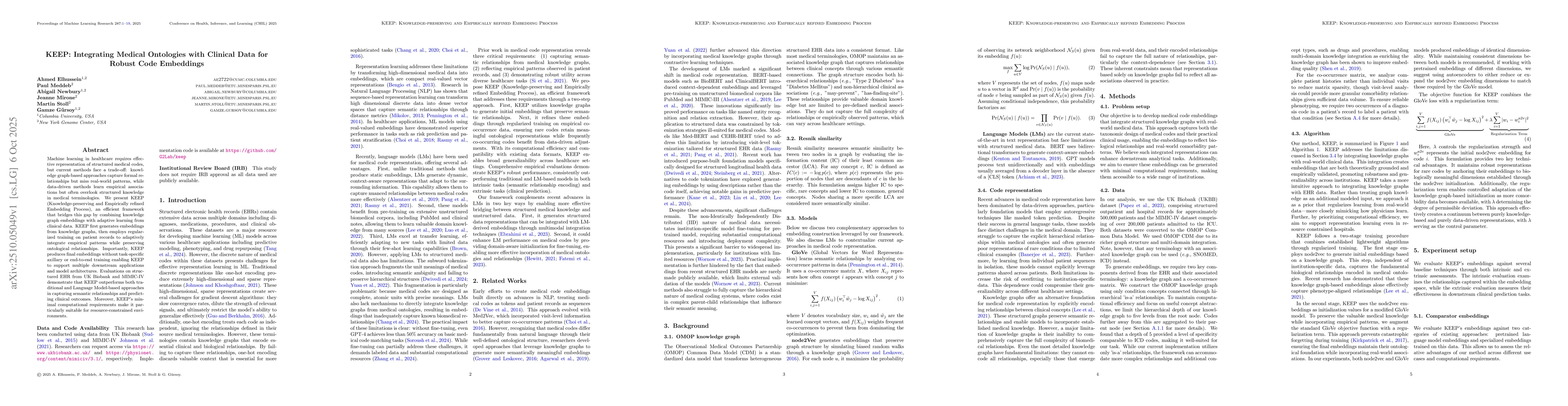 Machine learning in healthcare requires effective representation of structured medical codes, but current methods face a trade off: knowledge graph based approaches capture formal relationships but miss real world patterns, while data driven methods learn empirical associations but often overlook structured knowledge in medical terminologies. We present KEEP (Knowledge preserving and Empirically refined Embedding Process), an efficient framework that bridges this gap by combining knowledge graph embeddings with adaptive learning from clinical data. KEEP first generates embeddings from knowledge graphs, then employs regularized training on patient records to adaptively integrate empirical patterns while preserving ontological relationships. Importantly, KEEP produces final embeddings without task specific auxiliary or end to end training enabling KEEP to support multiple downstream applications and model architectures. Evaluations on structured EHR from UK Biobank and MIMIC IV demonstrate that KEEP outperforms both traditional and Language Model based approaches in capturing semantic relationships and predicting clinical outcomes. Moreover, KEEP's minimal computational requirements make it particularly suitable for resource constrained environments.