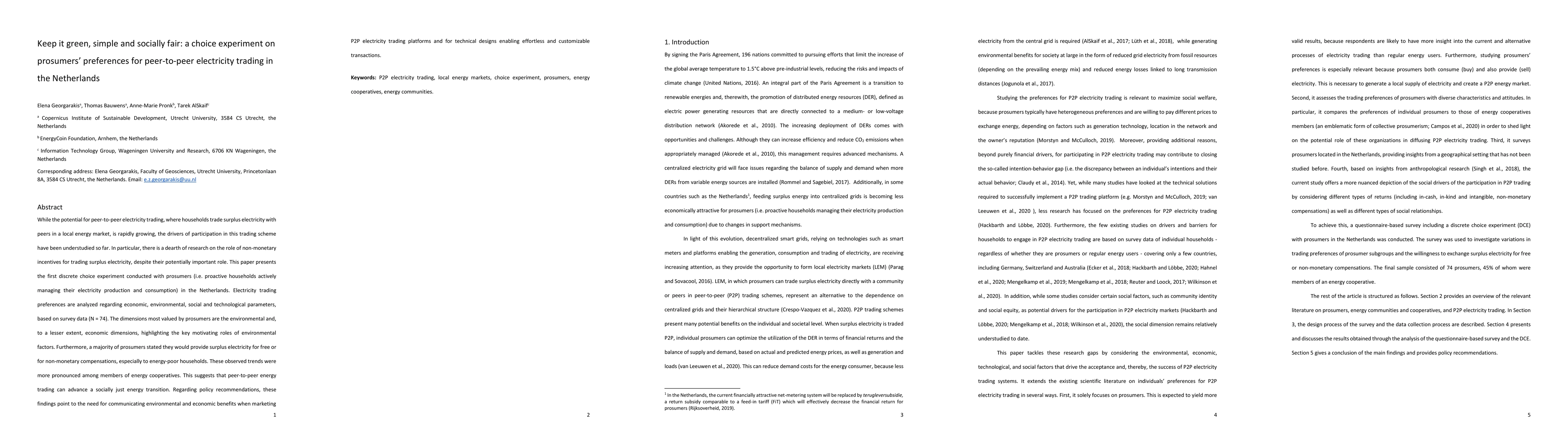 This study explores the preferences of prosumers in the Netherlands for peer-to-peer electricity trading, finding that environmental factors and social fairness are key motivators. The research highlights the importance of non-monetary incentives and suggests that promoting both environmental and economic benefits can enhance participation in P2P trading platforms.