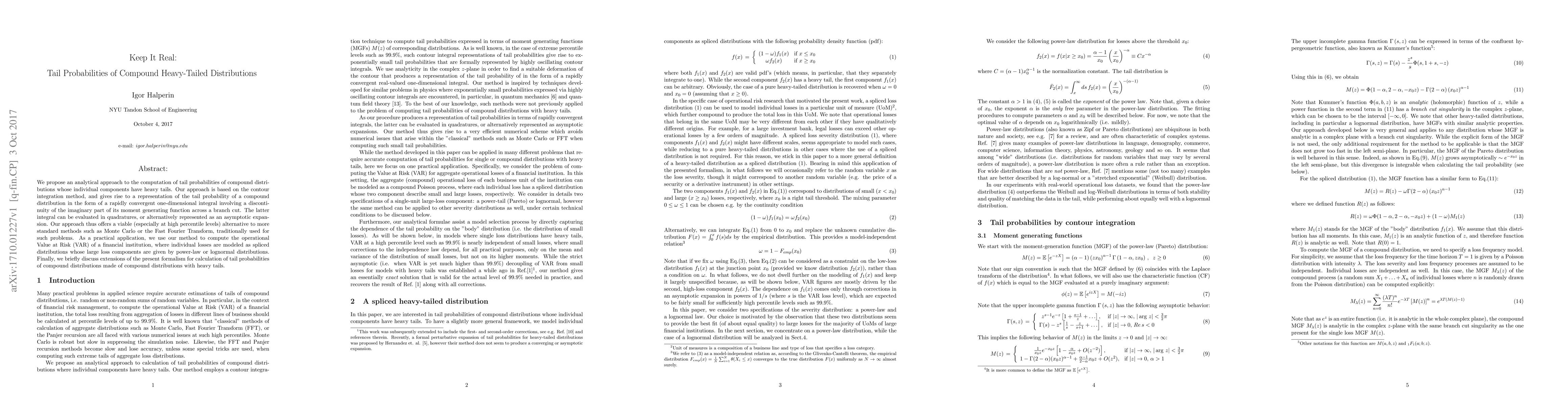 The development of a contour integration method for tail probabilities of compound heavy-tailed distributions, leading to a rapidly convergent integral representation.