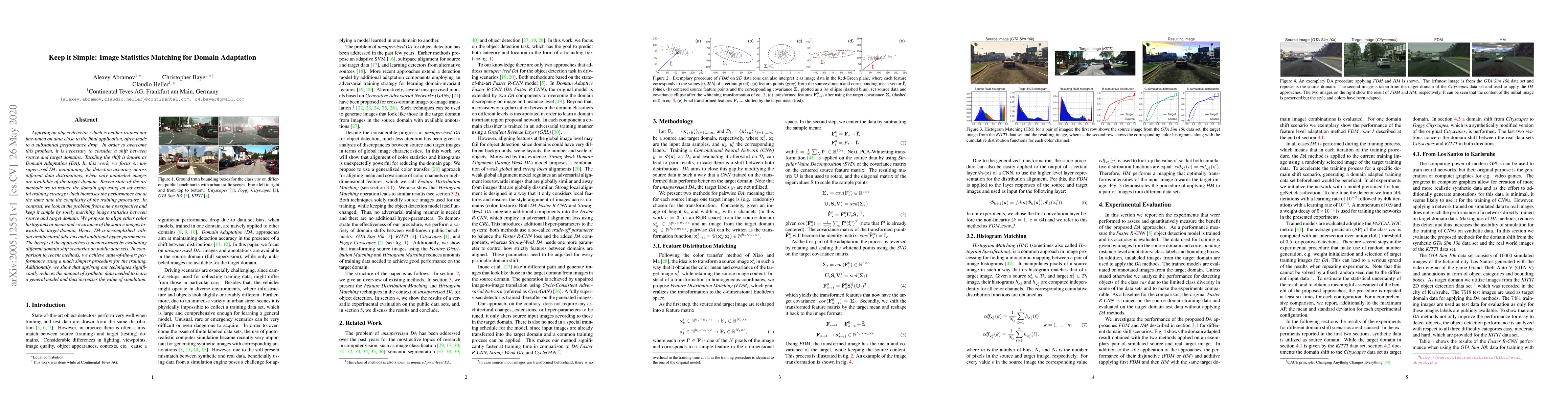 Applying an object detector, which is neither trained nor fine-tuned on data close to the final application, often leads to a substantial performance drop. In order to overcome this problem, it is necessary to consider a shift between source and target domains. Tackling the shift is known as Domain Adaptation (DA). In this work, we focus on unsupervised DA: maintaining the detection accuracy across different data distributions, when only unlabeled images are available of the target domain. Recent state-of-the-art methods try to reduce the domain gap using an adversarial training strategy which increases the performance but at the same time the complexity of the training procedure. In contrast, we look at the problem from a new perspective and keep it simple by solely matching image statistics between source and target domain. We propose to align either color histograms or mean and covariance of the source images towards the target domain. Hence, DA is accomplished without architectural add-ons and additional hyper-parameters. The benefit of the approaches is demonstrated by evaluating different domain shift scenarios on public data sets. In comparison to recent methods, we achieve state-of-the-art performance using a much simpler procedure for the training. Additionally, we show that applying our techniques significantly reduces the amount of synthetic data needed to learn a general model and thus increases the value of simulation.