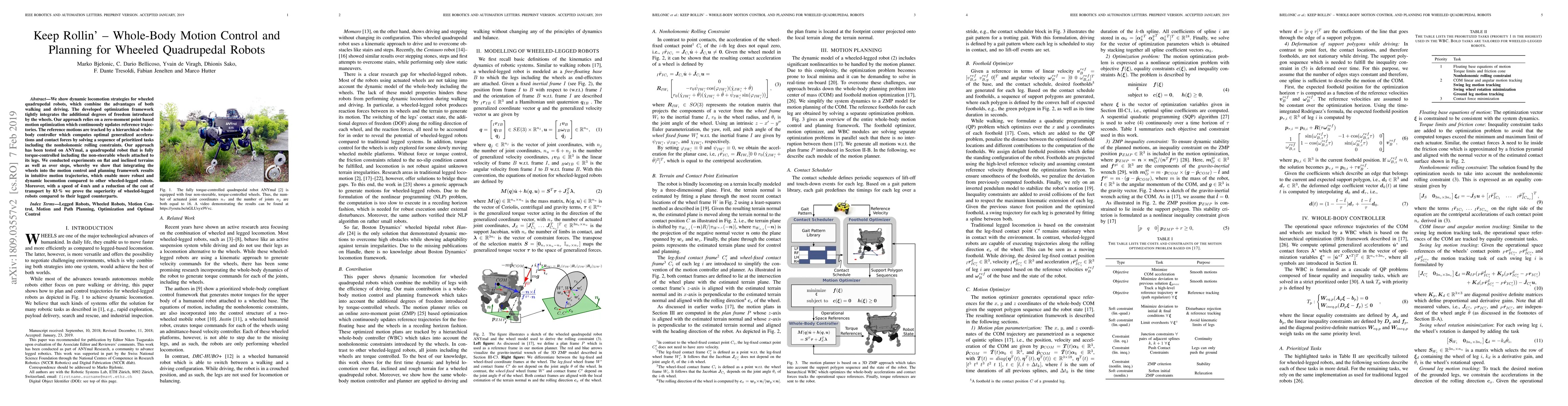 The research presents a whole-body motion control and planning framework for quadrupedal robots equipped with non-steerable, torque-controlled wheels as end-effectors, integrating the advantages of both wheeled and legged robots.