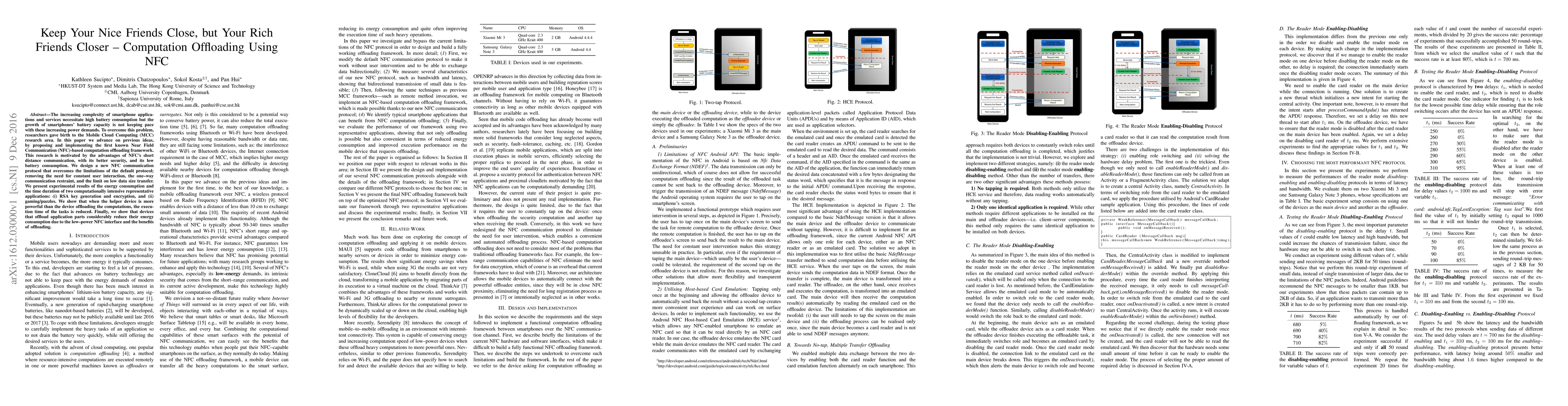 This paper introduces an NFC-based computation offloading framework to address smartphone battery issues from high app power demands. The proposed protocol improves on default NFC limitations, enabling one-way communication and handling larger data sizes. Experiments show reduced execution times for tasks offloaded to more powerful devices and significant energy savings due to NFC's low power consumption.